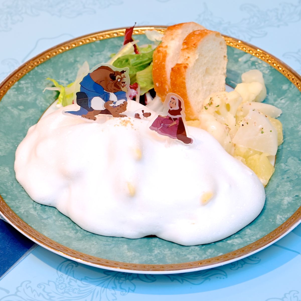 「ベル」と「野獣」の心の距離が縮まったシーンを、雪に見立てたふわふわのクリームパスタで再現したメニュー。
