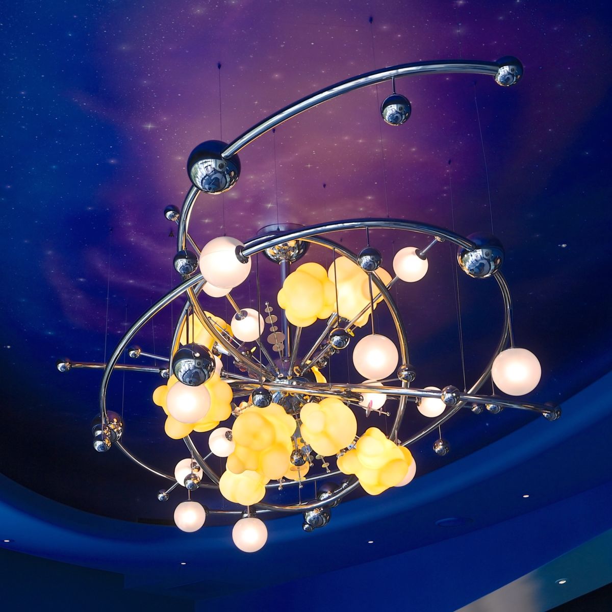 宇宙のはじめの大爆発とされる“ビッグバン”を表現した巨大なポップコーンのシャンデリアも吊り下げられています☆