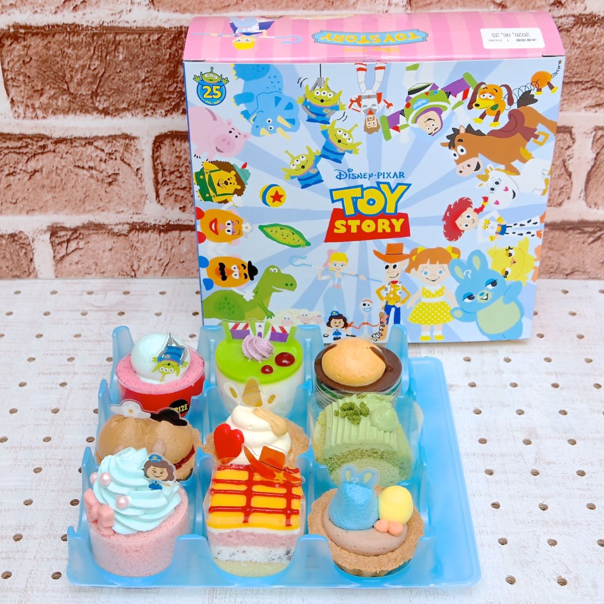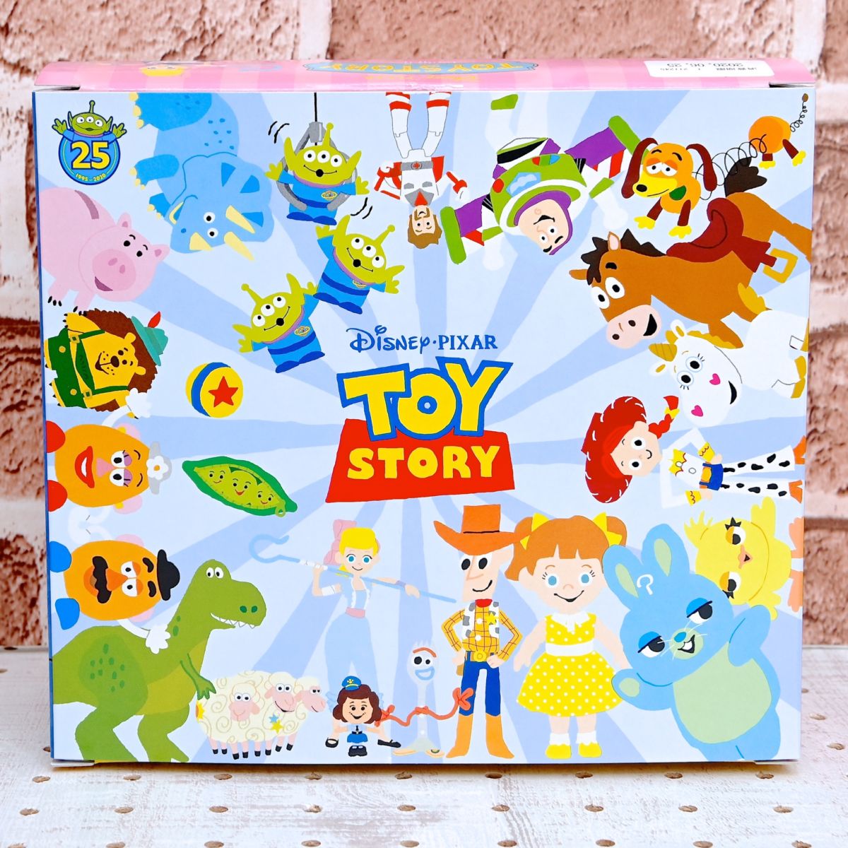 トイ・ストーリーコレクションのボックスは、25周年のマーク、「トイ・ストーリー」シリーズのキャラクターたちが描かれた賑やかなデザイン。