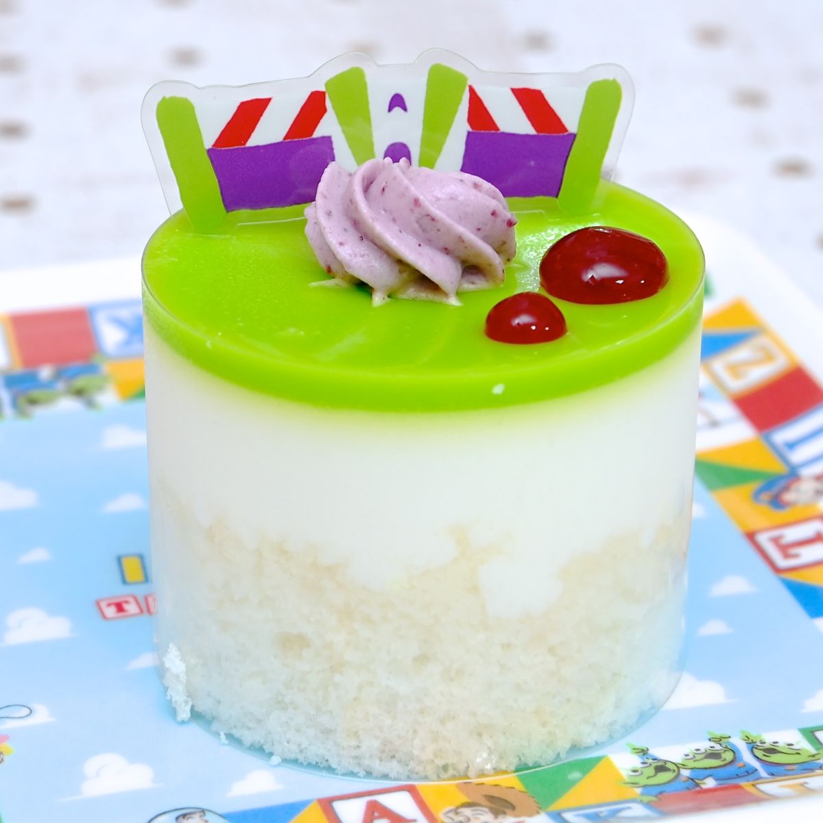 もうひとりの主人公「バズ・ライトイヤー」は、マスカット(ぶどう)ジャム入りチーズムース。