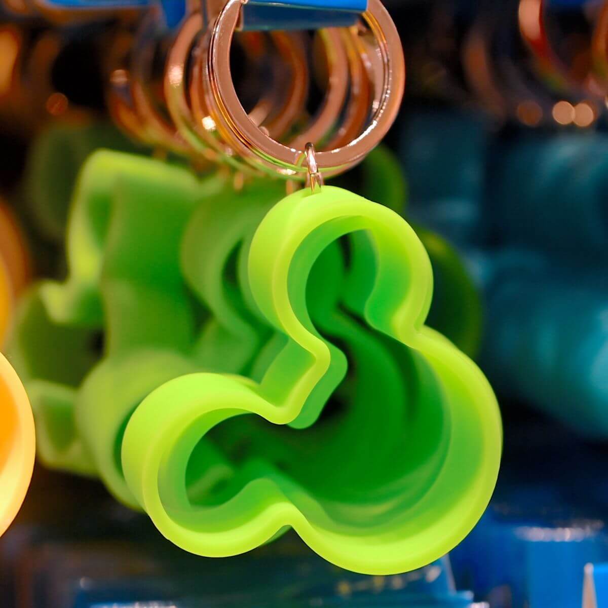 目立つカラーでお土産にもおすすめなミッキーデザインキーチェーン。