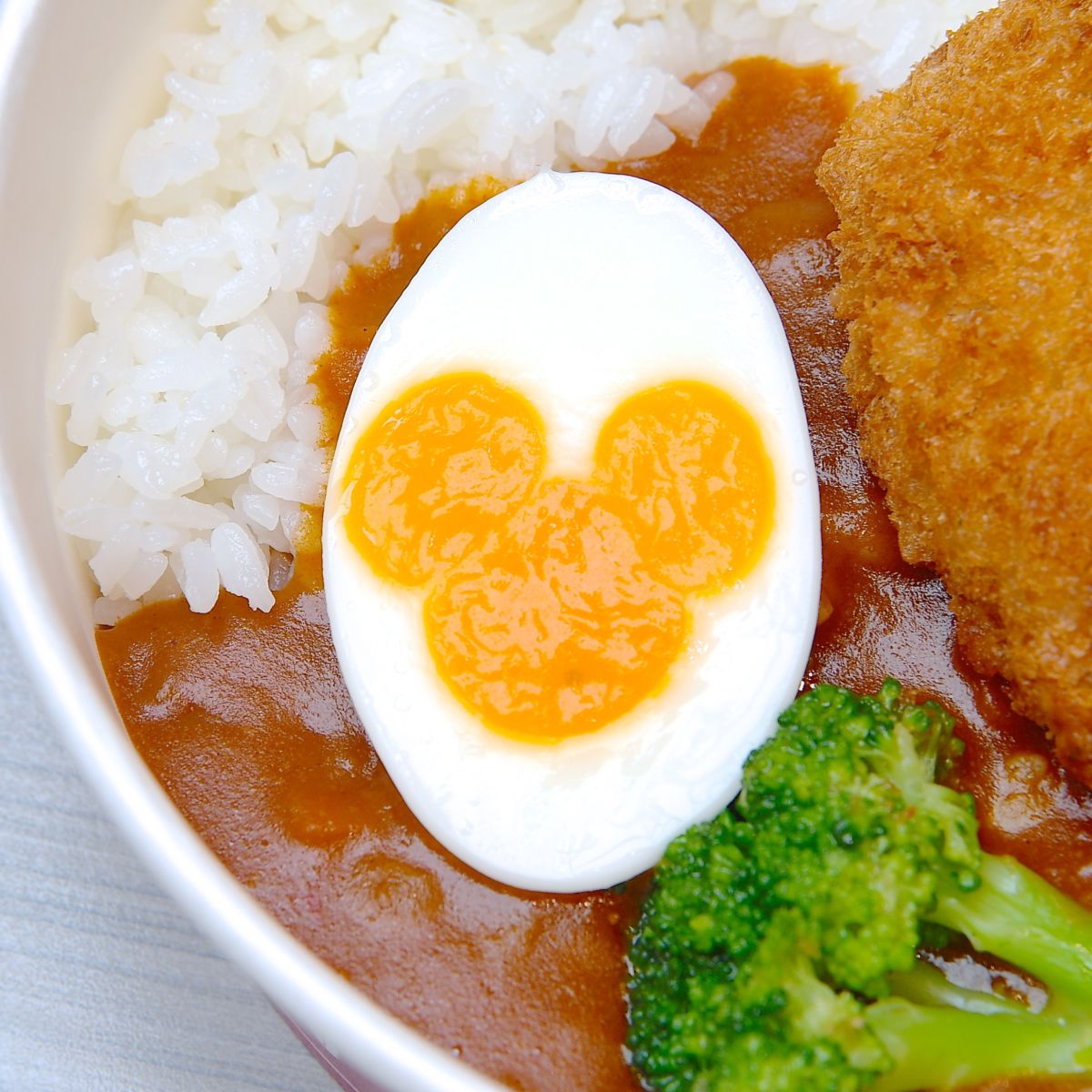 かわいいミッキーシェイプのたまごもトッピングされています。