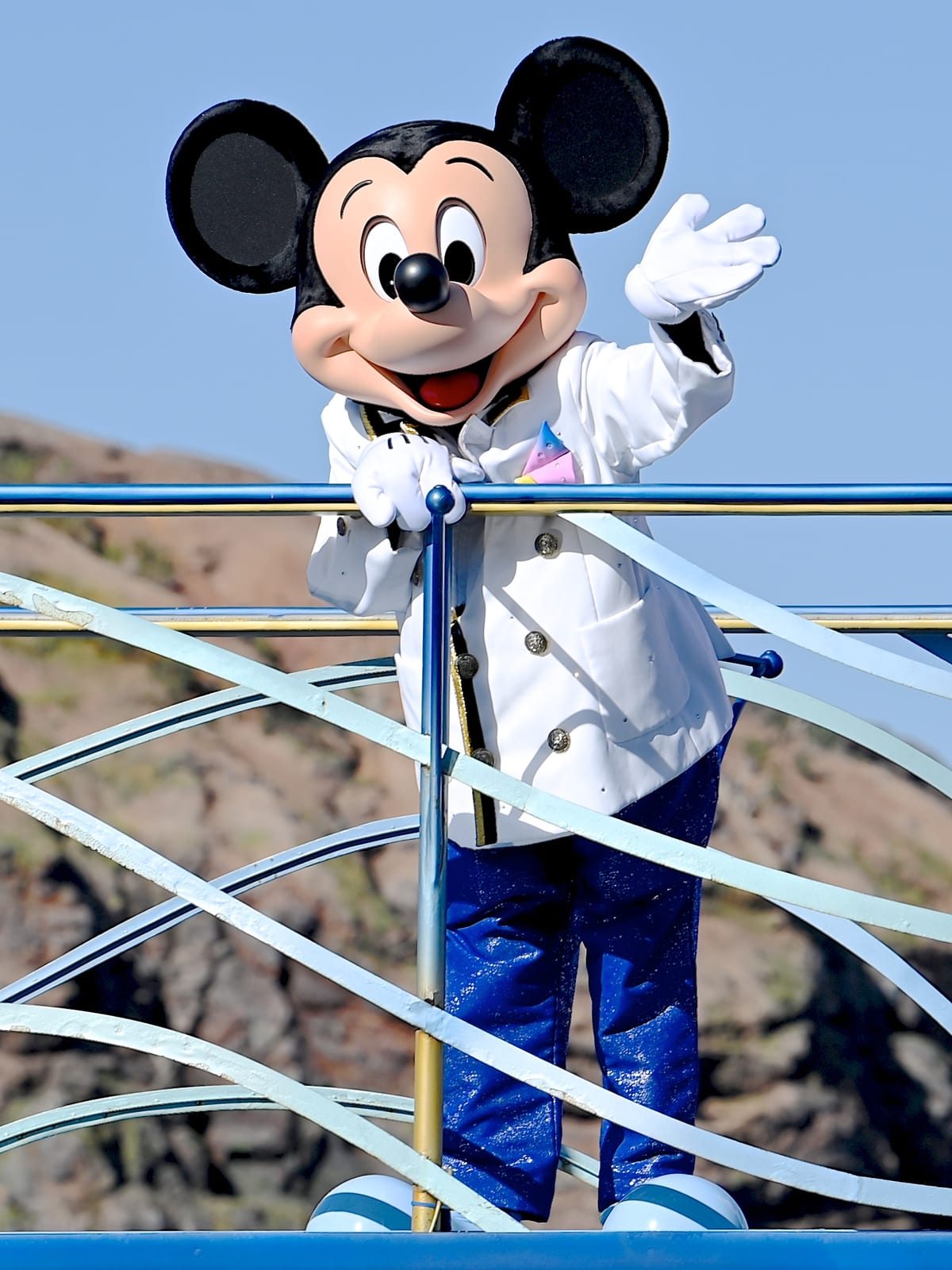 ミッキーマウスはクルーズ・ディレクターコスチューム。