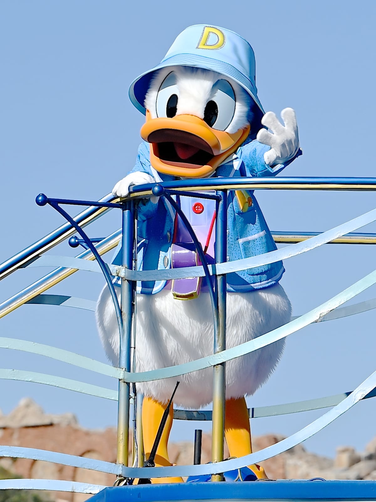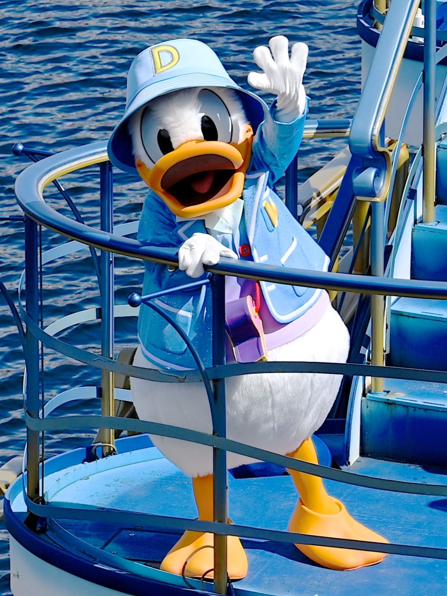 ドナルドダックは大きな笛がかわいさのポイントのアクティビティー・ディレクター。