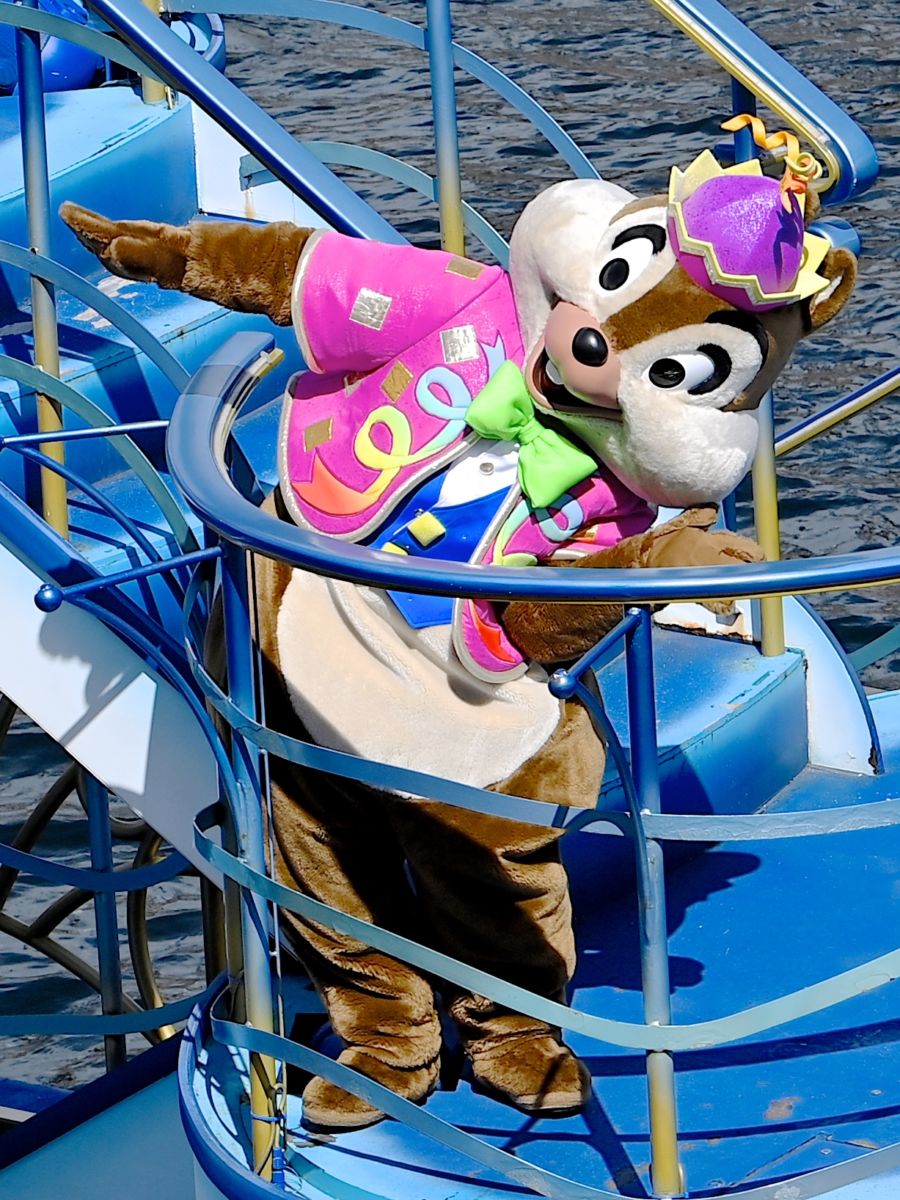東京ディズニーシー5周年にドッグサイドステージで公演されていた「オーバー・ザ・ウェイブ」で着ていたパーティーディレクターのコスチュームを着て登場します☆