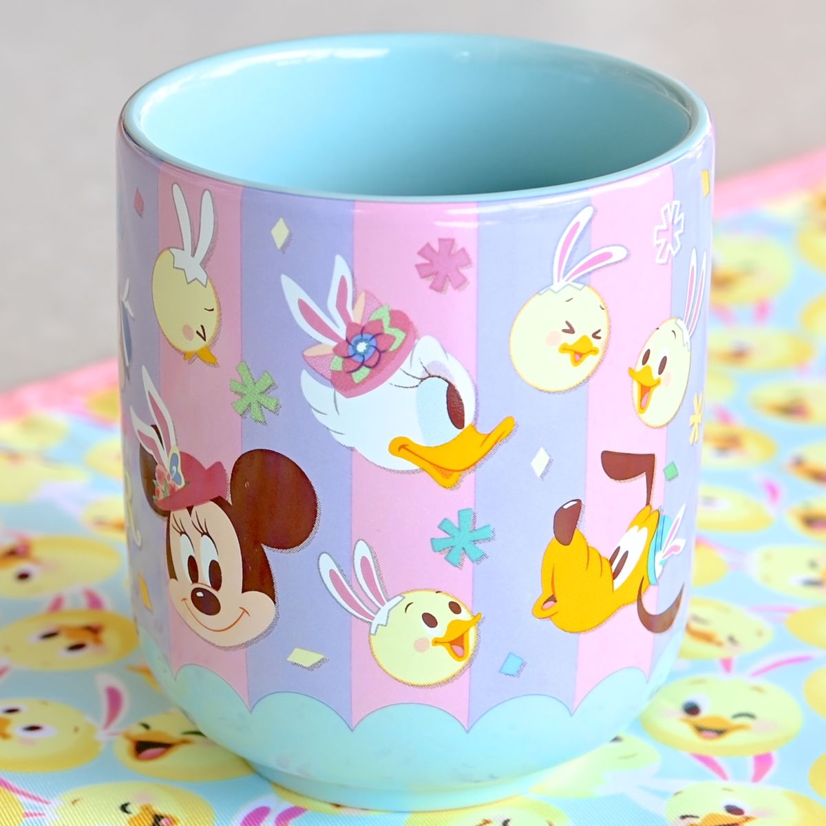 カップには、“Tip-Topイースター”コスチュームのミッキーマウス、ミニーマウス、チップ、デール、うさピヨ、