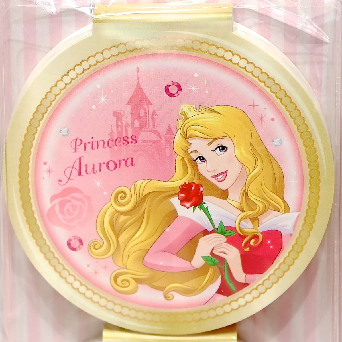 ディズニー映画『眠れる森の美女』のディズニープリンセス「オーロラ姫」がデザインされたコンパクト型メモ。