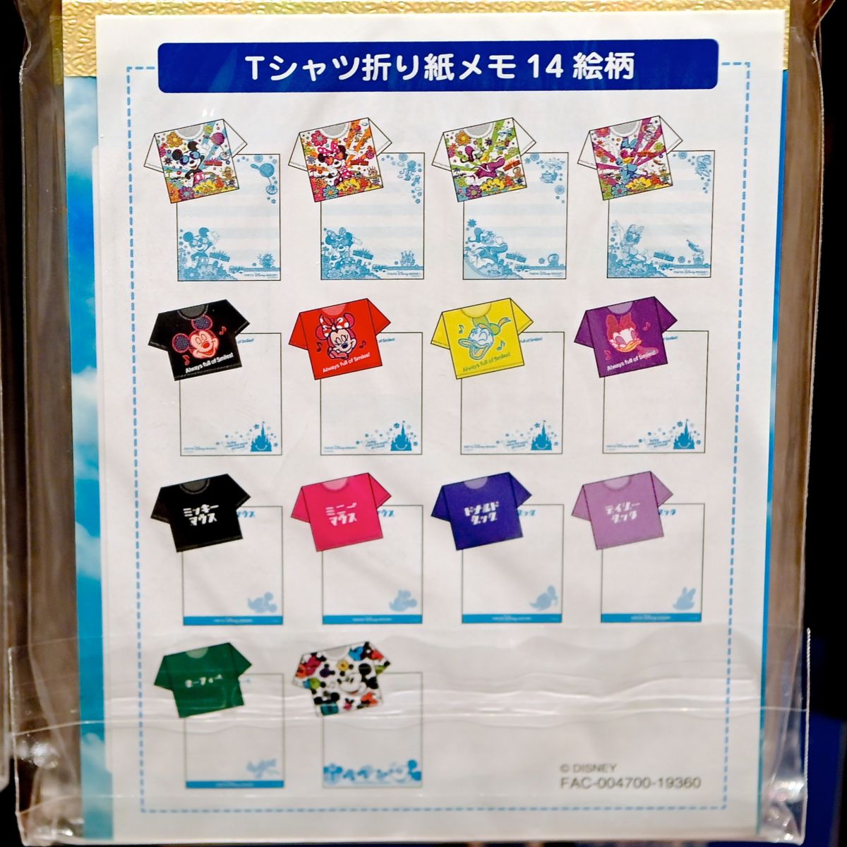 東京ディズニーランドTシャツ折り紙メモセット
