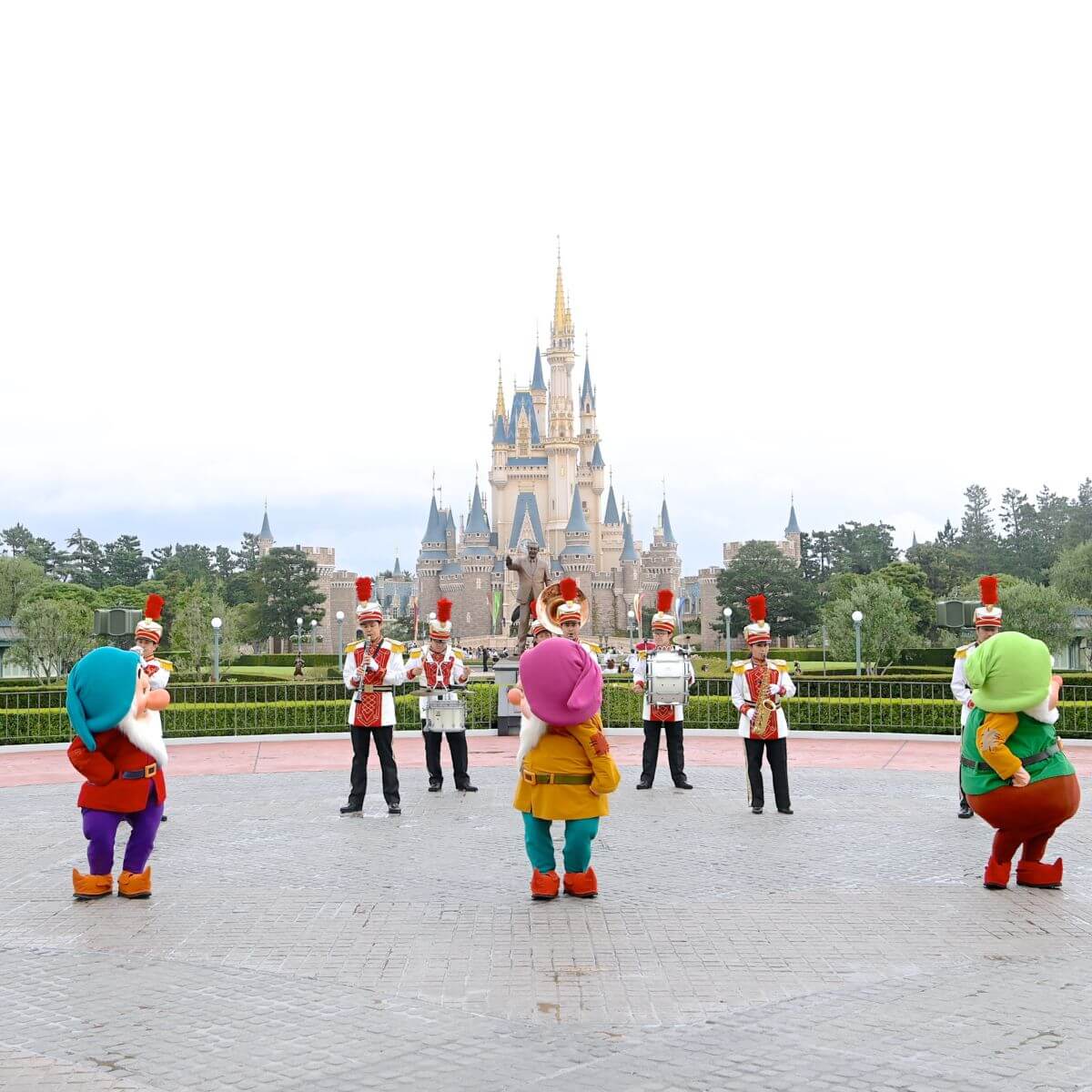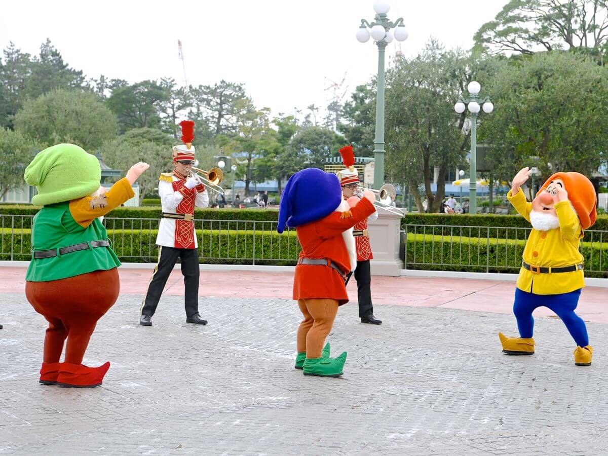 七人のこびとがバンドと一緒にご挨拶!東京ディズニーランド グリーティングの紹介でした。