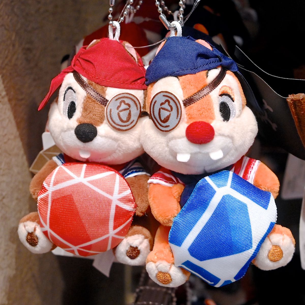 どんぐり模様の眼帯、赤と青のバンダナをつけたチップとデール。