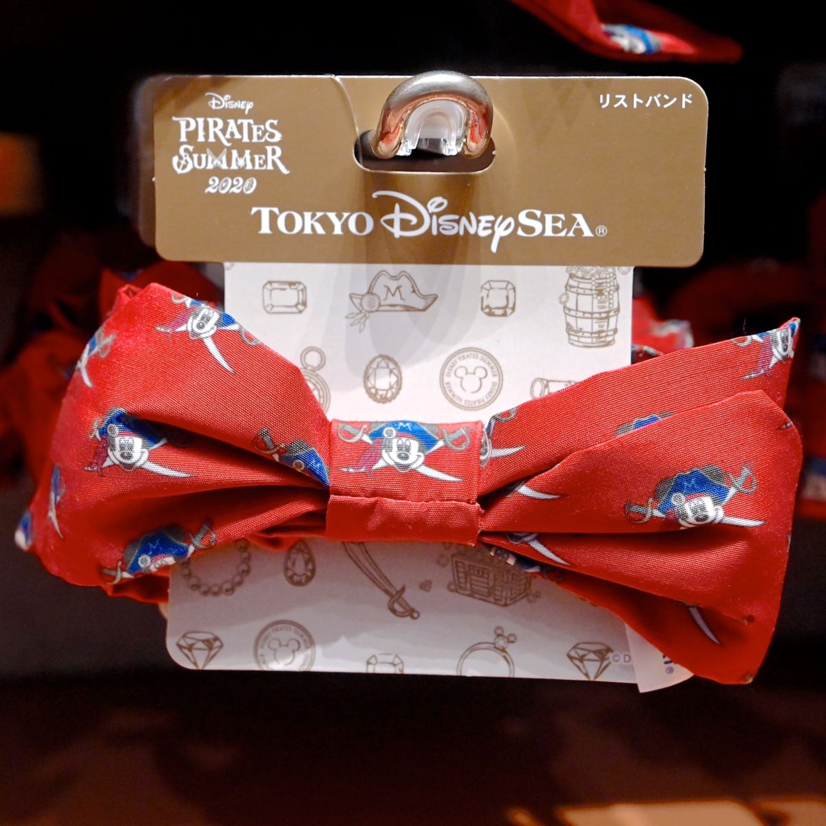 パイレーツミッキーが総柄でデザインされたリボンデザインリストバンド。