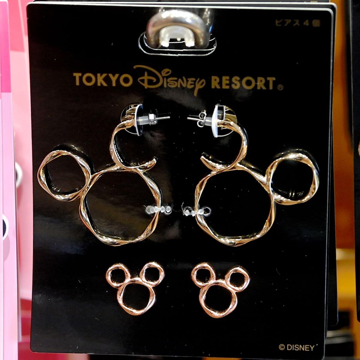 同デザインのミッキーシェイプ(ミツマル)のピアスと、小さめサイズのイヤリングのセットも展開されています。