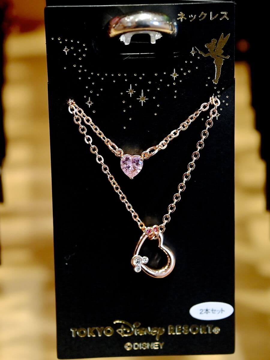 さりげないミッキーシェイプがかわいいハートのネックレスと、ピンクのストーンがおしゃれなネックレスのセット。