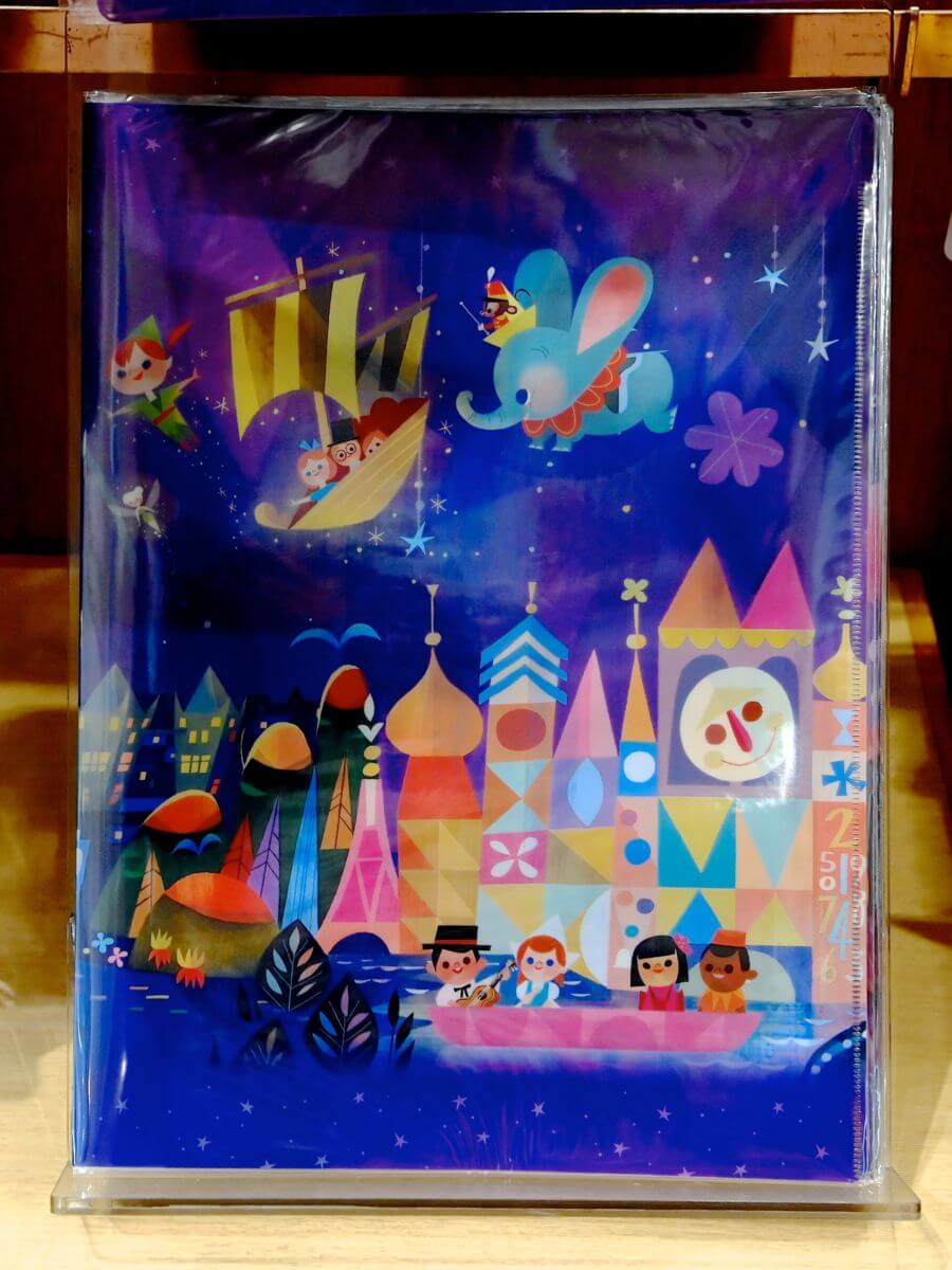 イッツ・ア・スモールワールドを中心にダンボやピーター・パン、ティンカー・ベルたちが空を飛ぶアートがデザインされています。