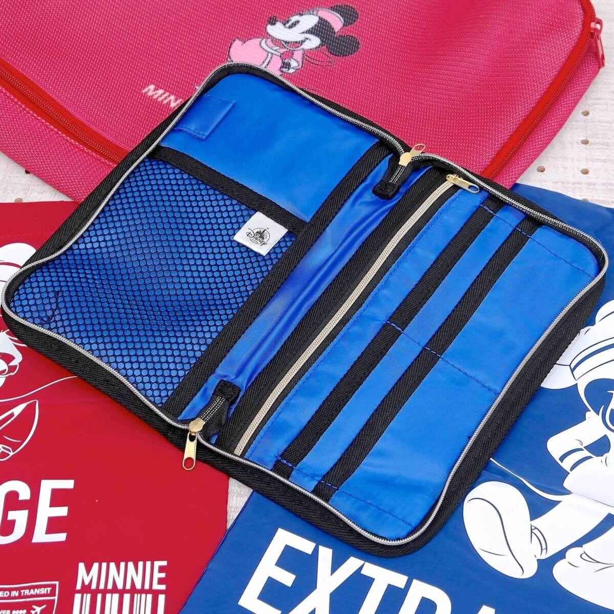 パイロット姿のミッキーマウス、スタンプなどデザインされたマルチケース。