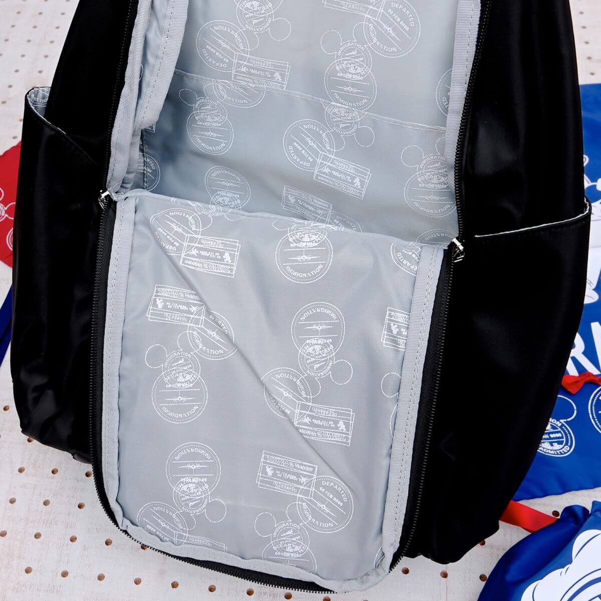 パイロット姿のミッキーマウスがデザインされたシンプルなバックパック。