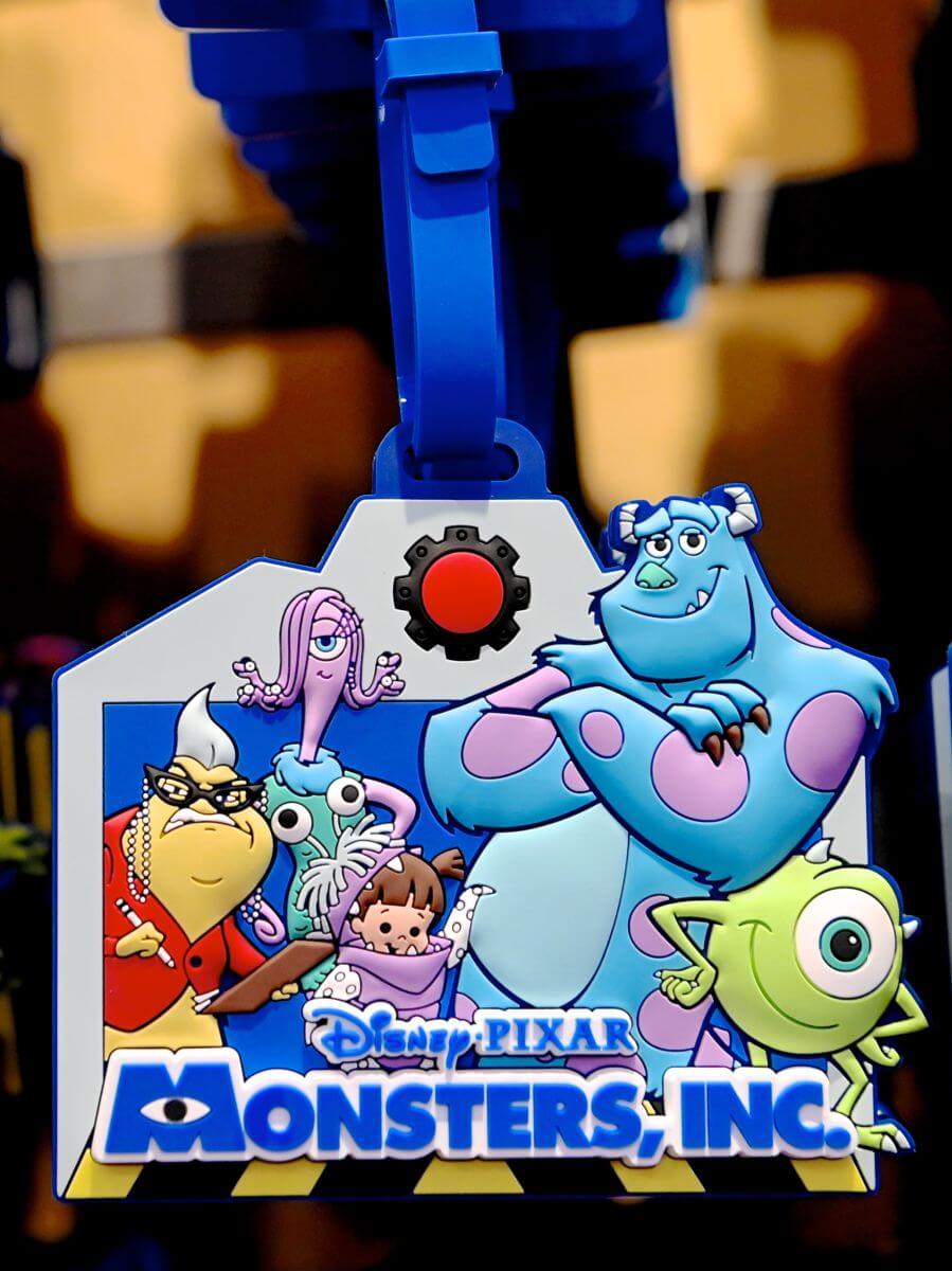 ディズニー&ピクサー映画『モンスターズ・インク』のキャラクターたちがデザインされたラゲッジタグ。