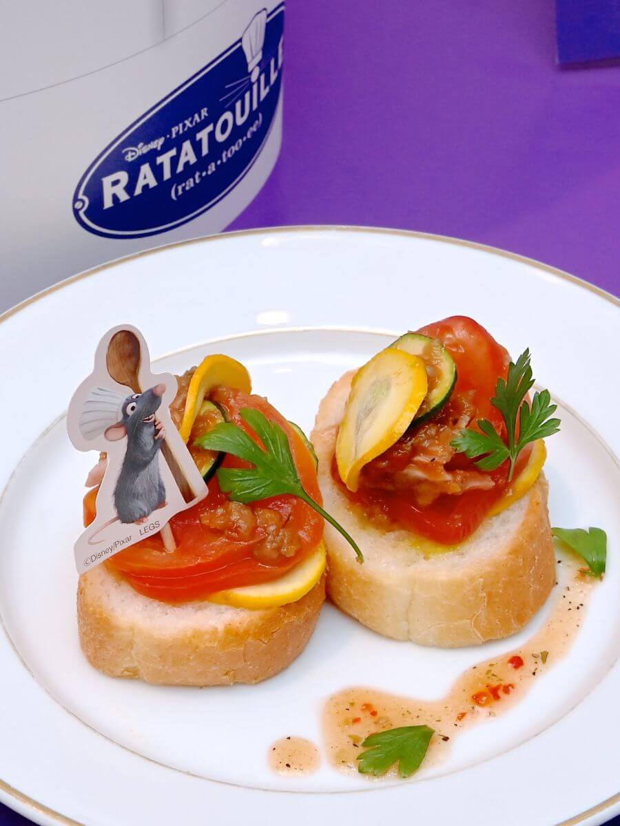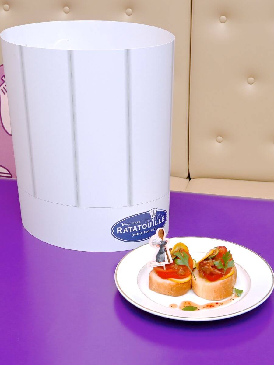 コック帽子を開けると『レミーのおいしいレストラン』の主人公「レミー」の得意料理のラタトゥイユが登場!