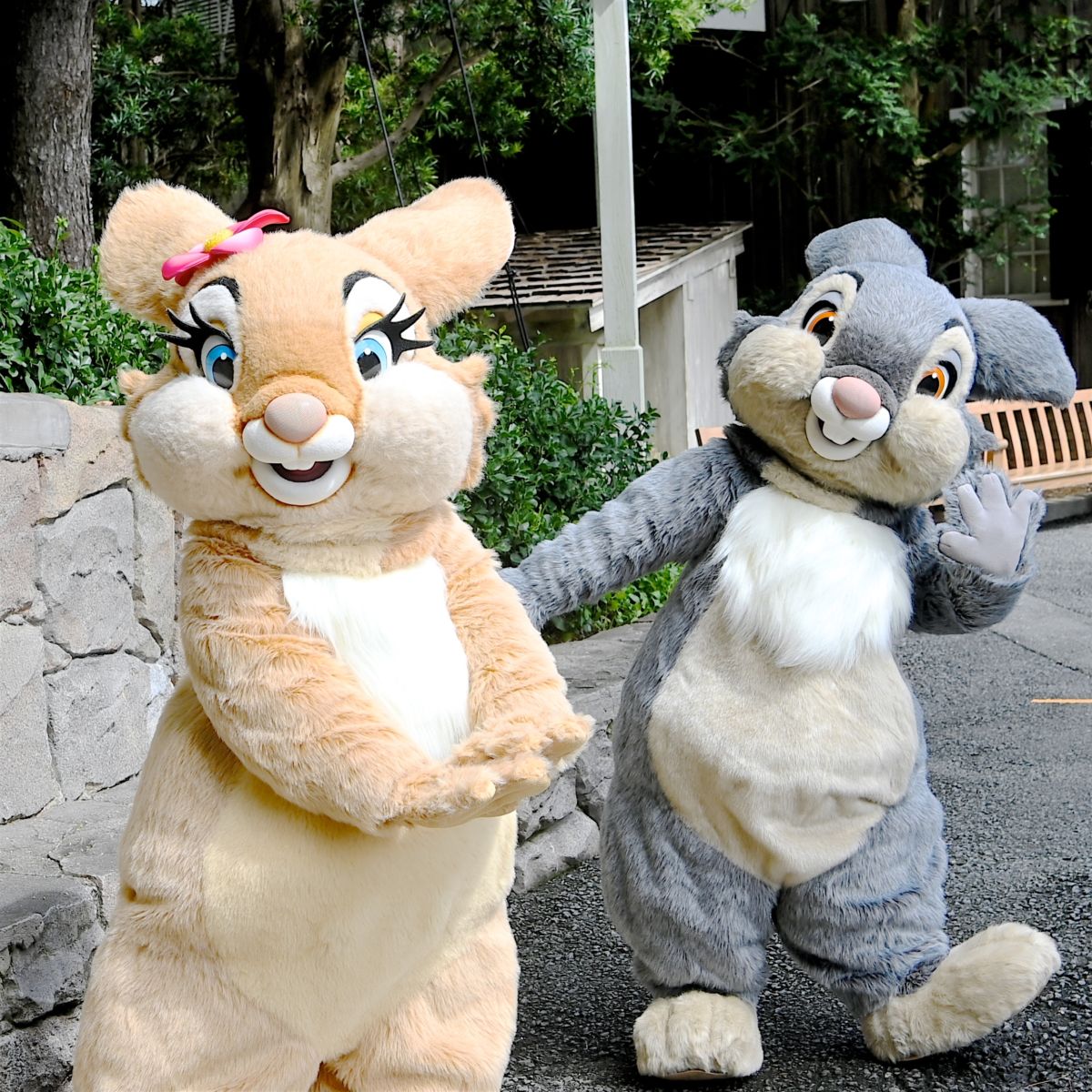 ディズニー映画『バンビ』に登場するうさぎのキャラクター「とんすけ(サンパー)」と「ミス・バニー」が整列グリーティングに登場!