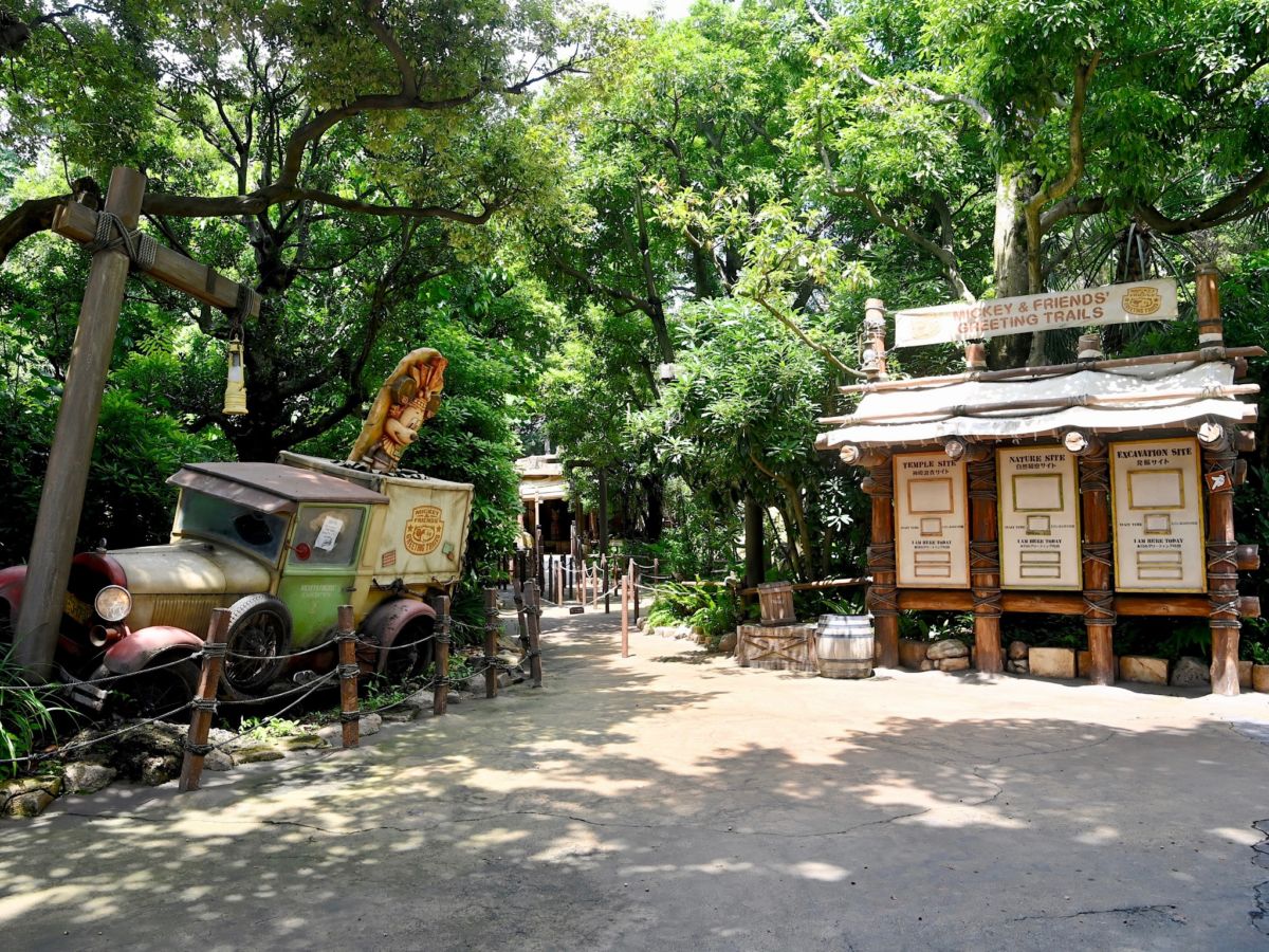 ロストリバーデルタのジャングルに囲まれた場所で、古代文明の遺跡や、植物や昆虫などの調査・研究をしているディズニーの仲間たちと記念撮影ができる「ミッキー&フレンズ・グリーティングトレイル」