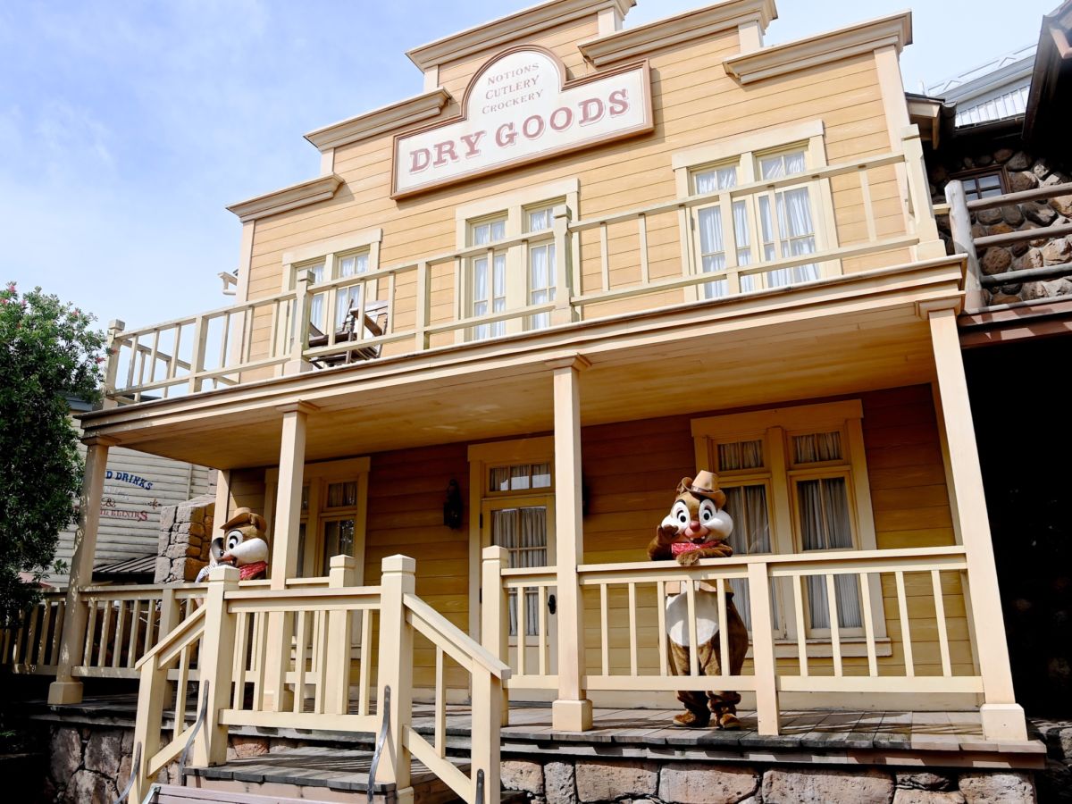 西部開拓時代の街並みとコスチュームがかわいい「チップ」と「デール」