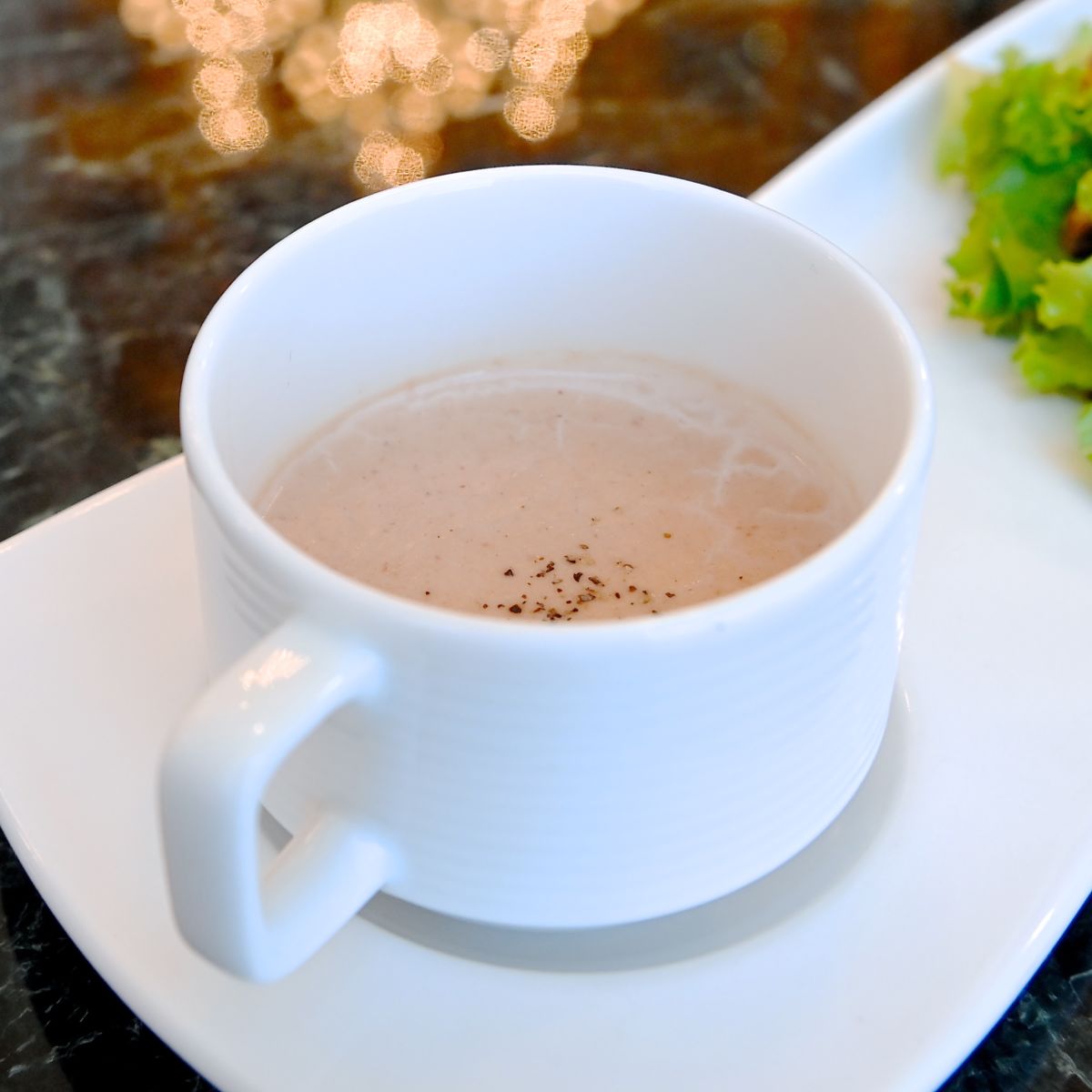 あたたかく濃厚な栗のポタージュには、栗も入っています。