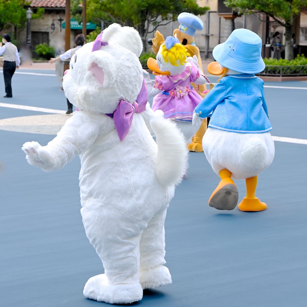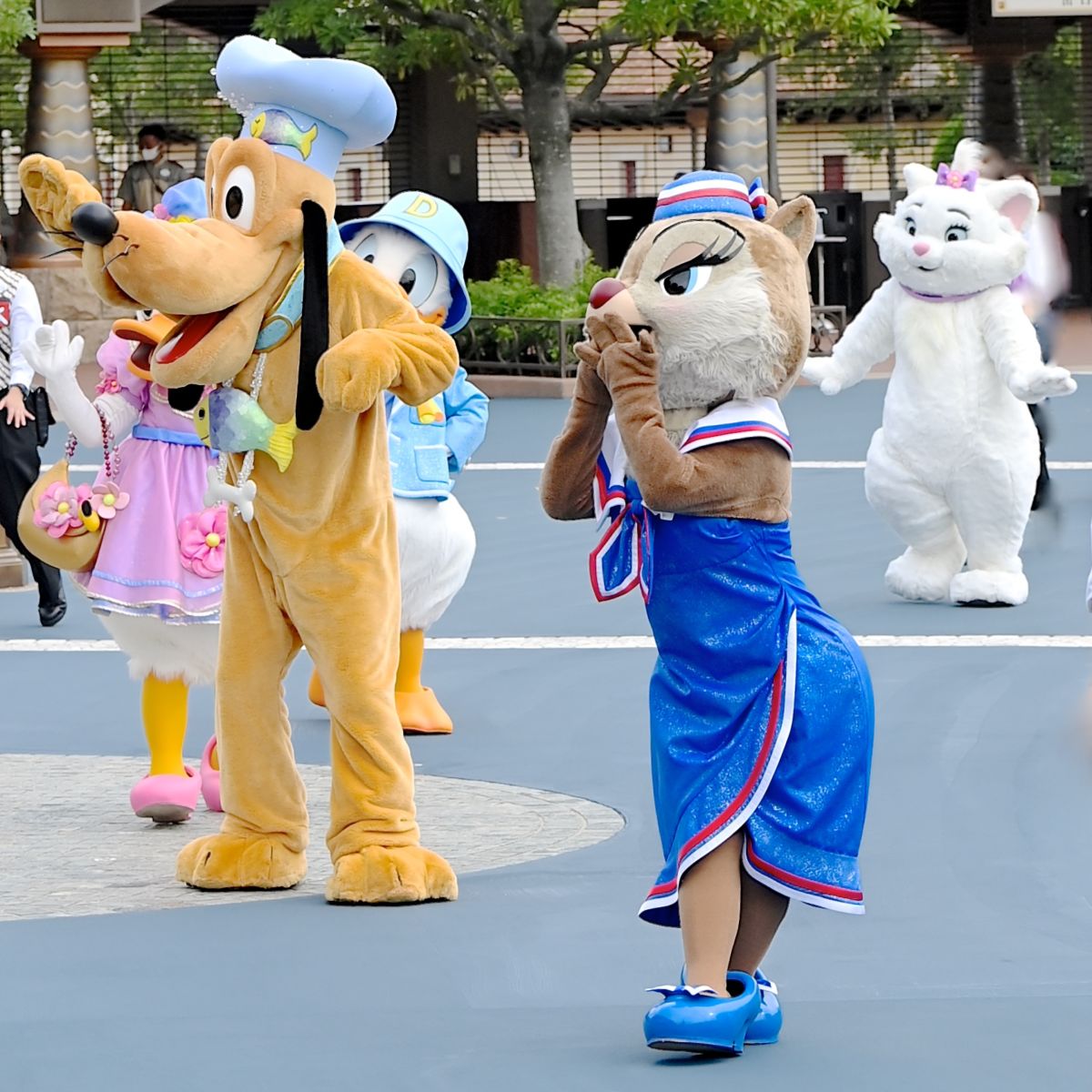 ドナルドダック、デイジーダック、プルート、クラリス、マリーが行進をしながら登場!