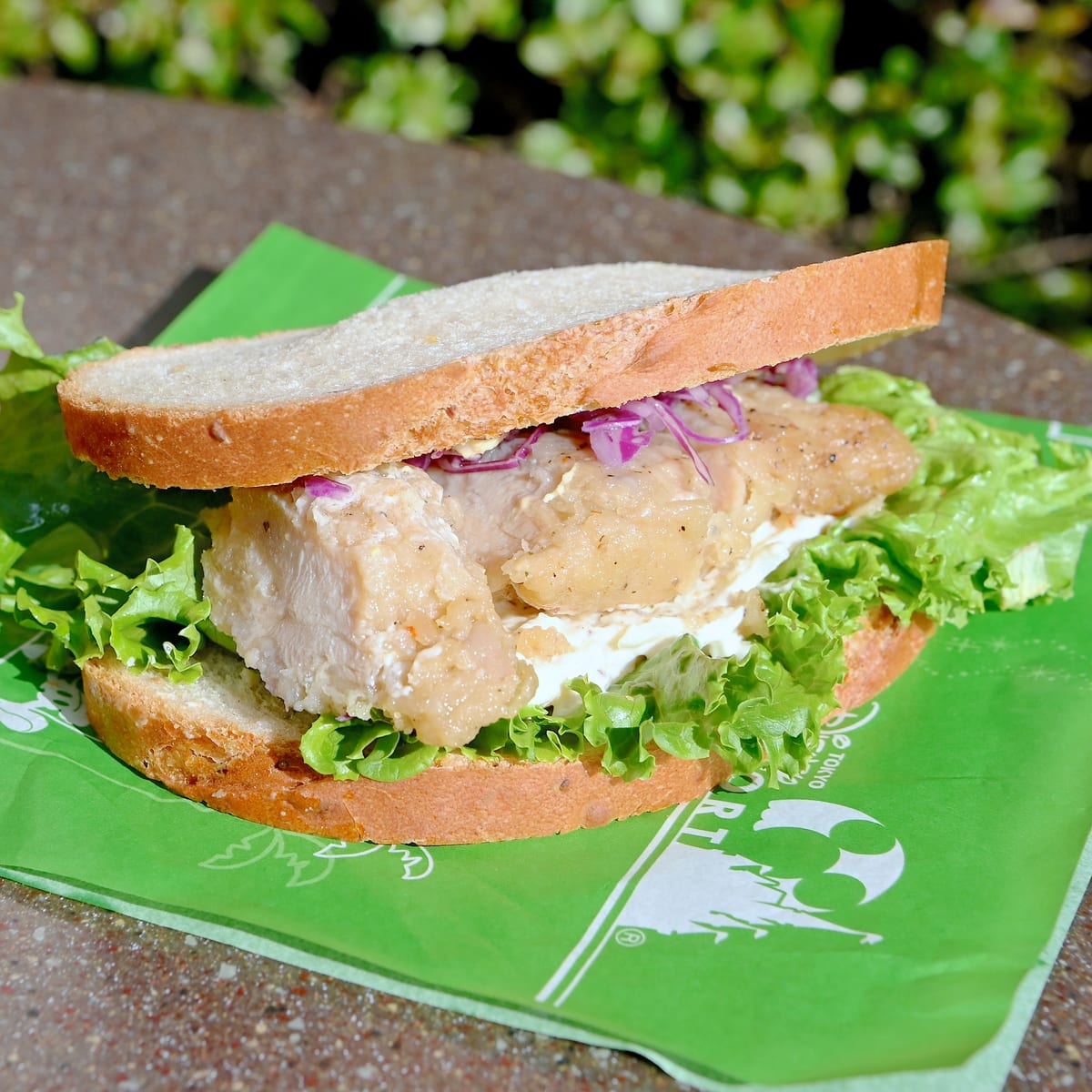 エッグサラダ、チキン、大根サラダがサンドされたボリューム満点なメニューです☆