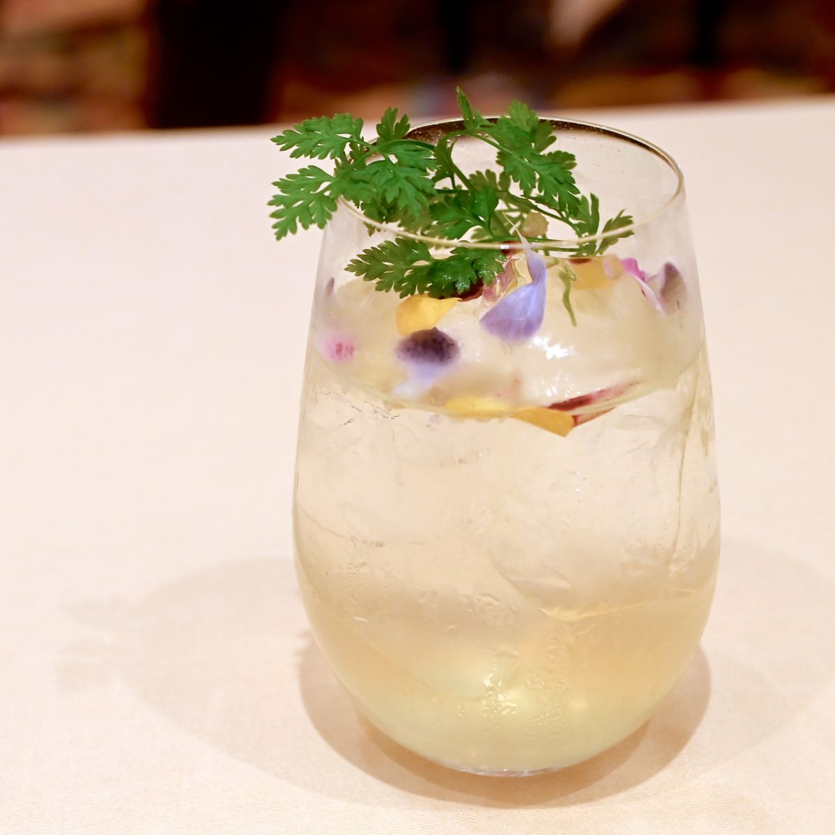 キンモクセイのシロップ、アップルタイザー、トニックウォーター、フレッシュレモンジュース入りのすっきり爽やかなスペシャルドリンク。