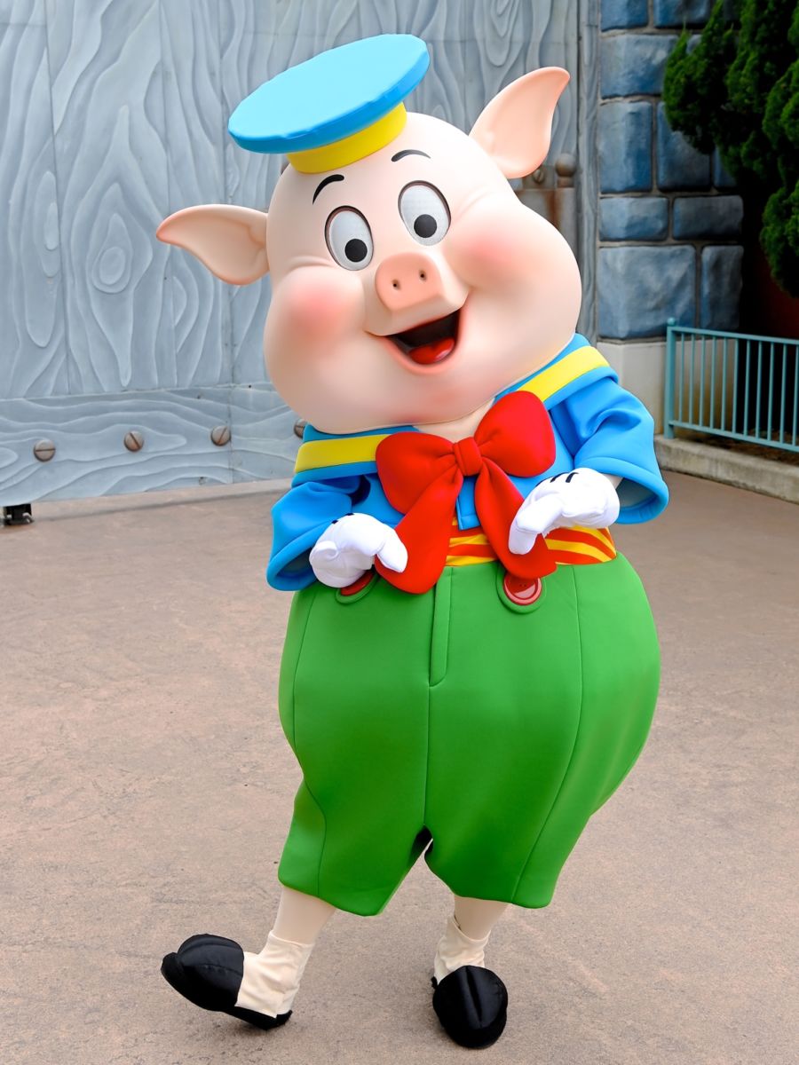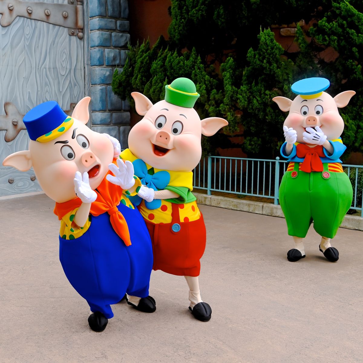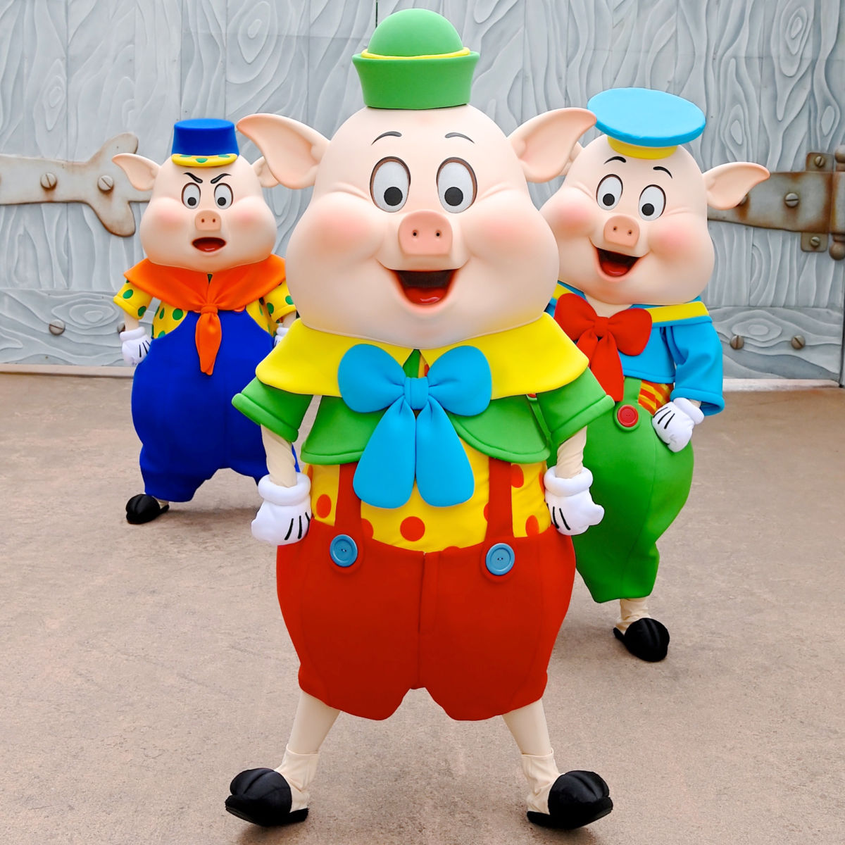 『3匹の子ぶた』劇中のコスチュームと異なり、トゥーンタウンのこぶたたちはポップで派手なコスチュームがかわいいですね!