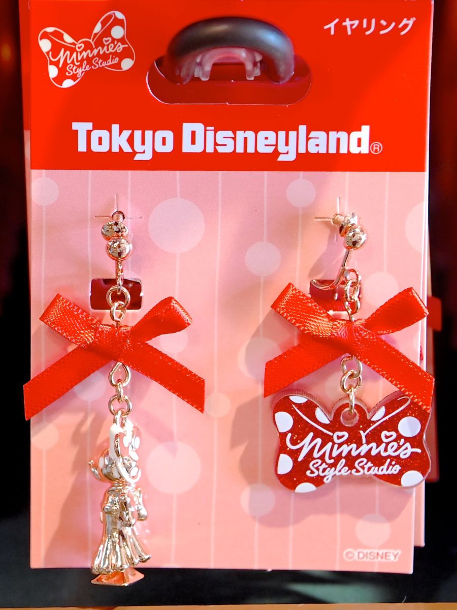 「ミニーのスタイルスタジオ」のロゴ、「ミニーマウス」のマネキン(トルソー)がデザインされたイヤリング。