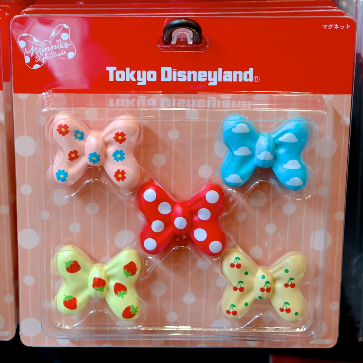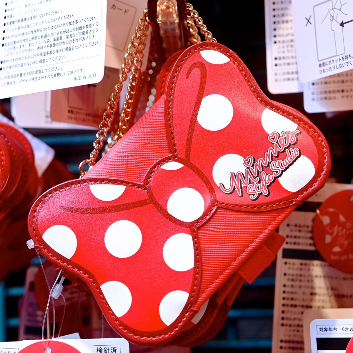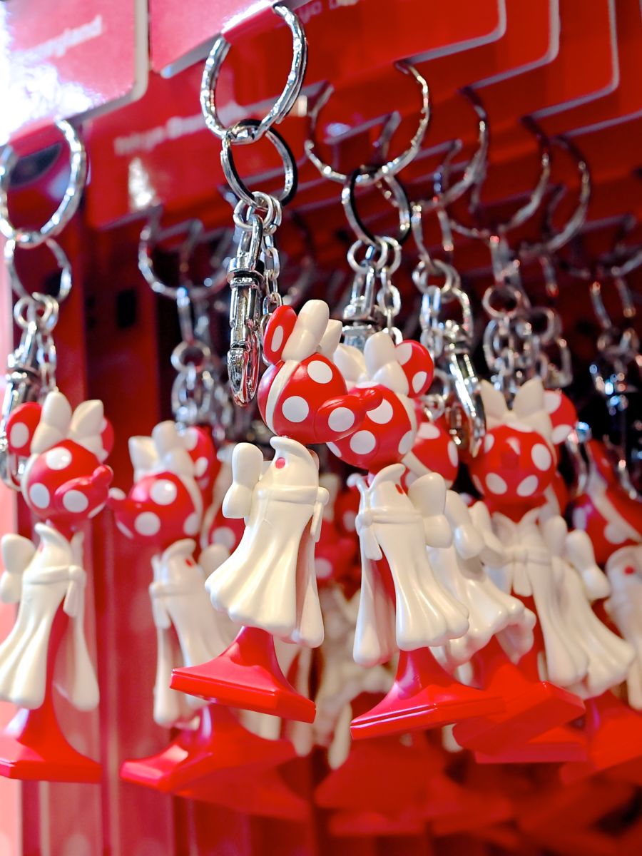 水玉模様の大きなリボンが目印の新グリーティング施設「ミニーのスタイルスタジオ」の「ミニーマウス」をモチーフにしたスペシャルグッズ。