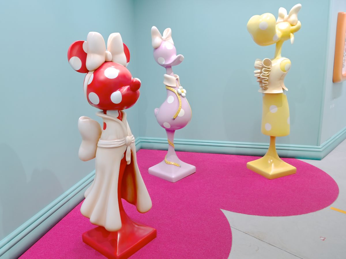 ワークルームにある「ミニーマウス」、「デイジーダック」、「クララベル・カウ」たちのマネキン風フィギュア。