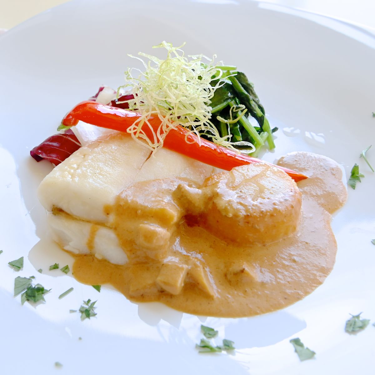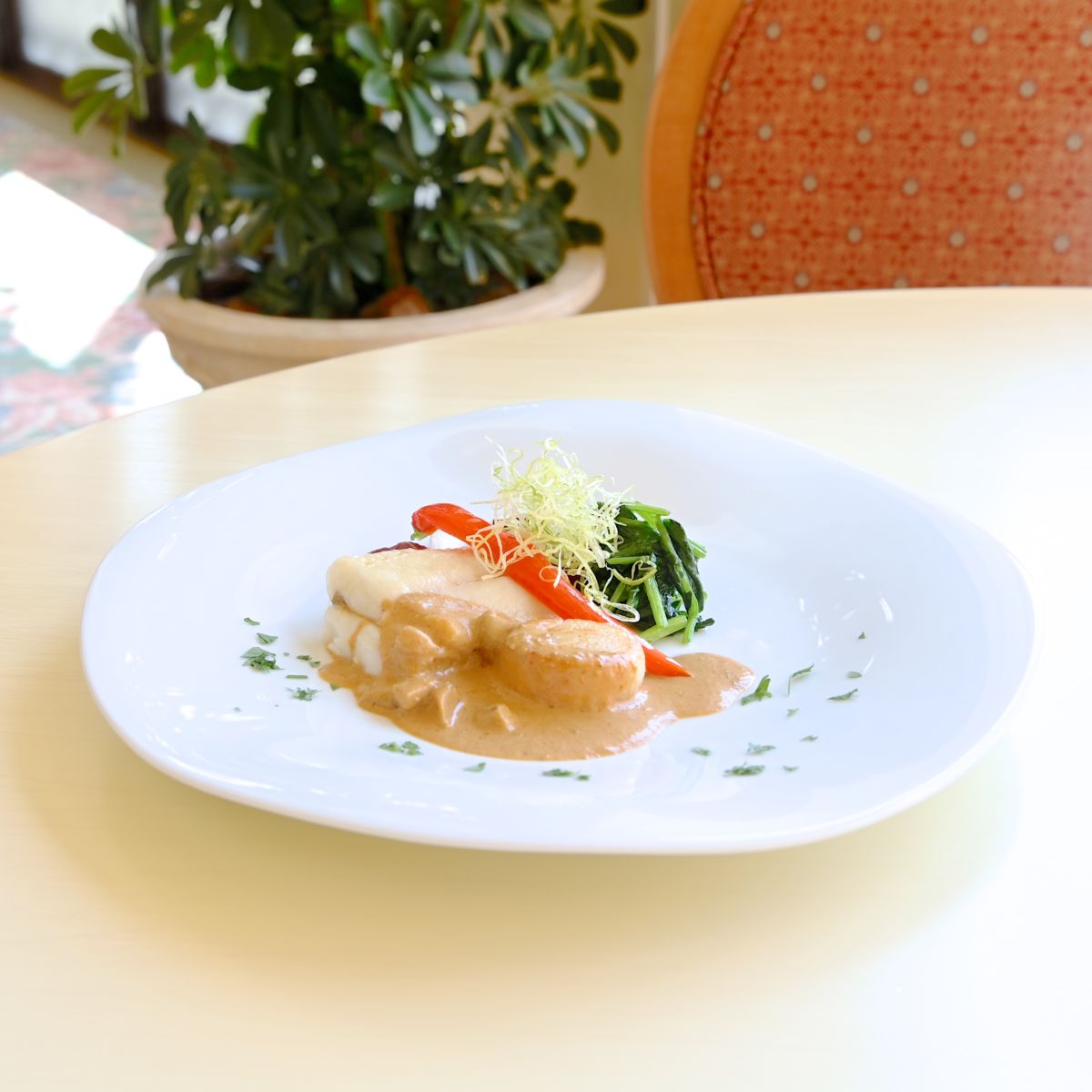 ■鰈のヴァポーレと帆立貝のインパデッラ ポルチーニのクリームソース
