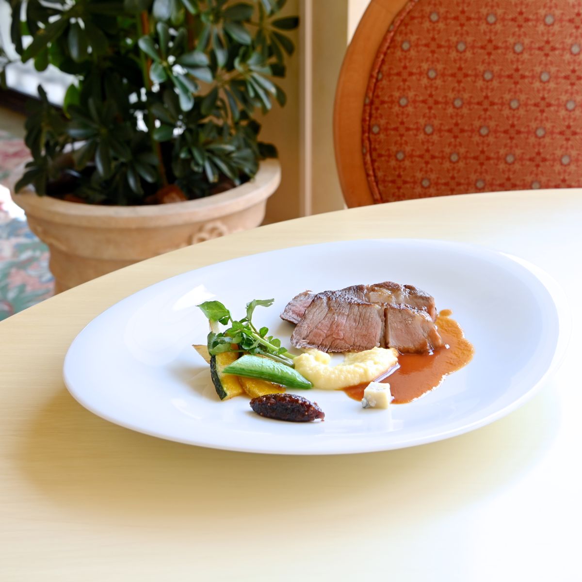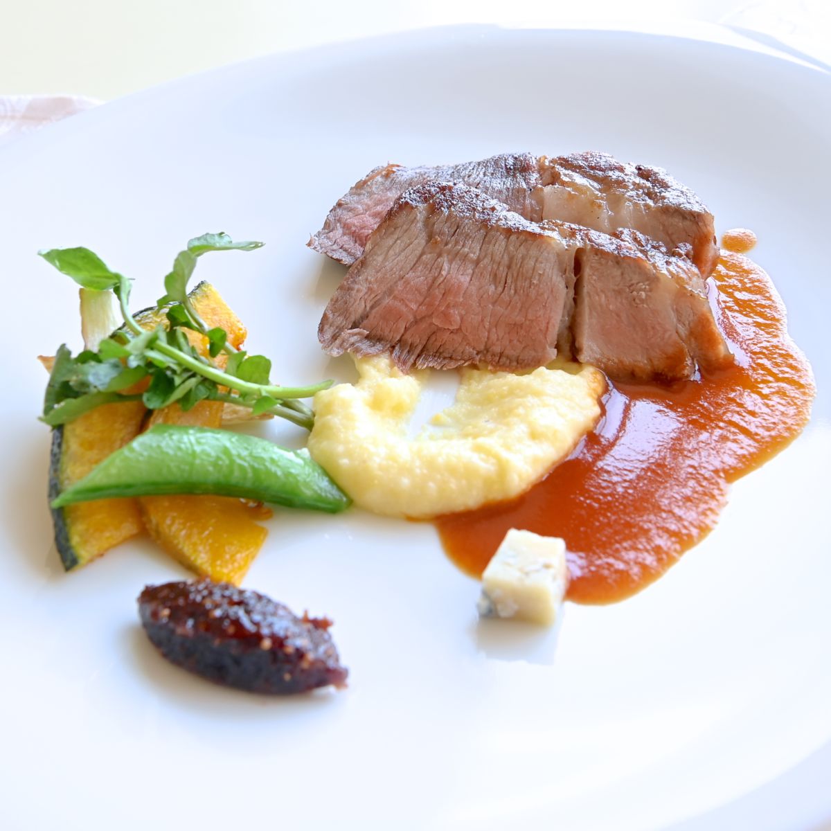イベリコ豚のアッロースト 無花果のアグロドルチェとゴルゴンゾーラ