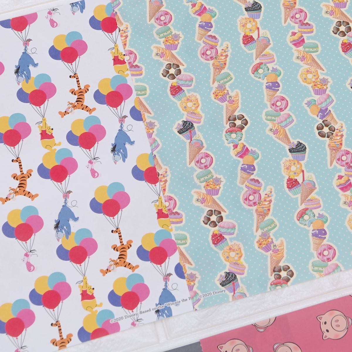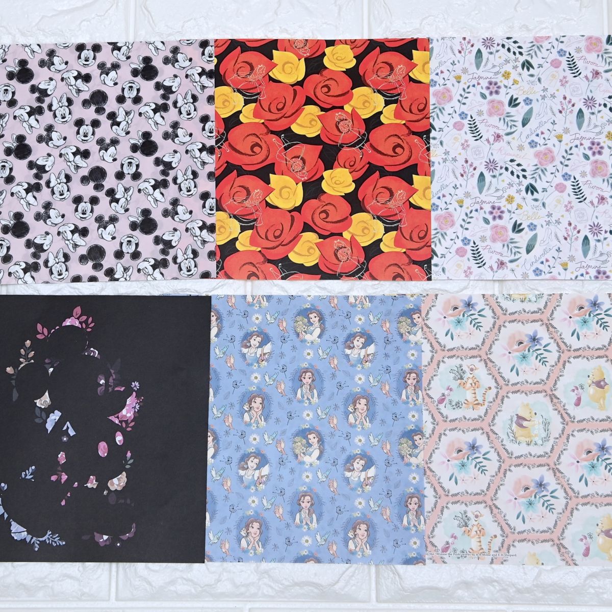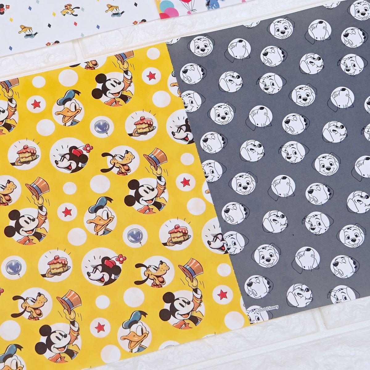 ツルツルとザラザラ、面によって手触りや風合いの異なる紙に、ディズニーの絵柄が印刷されています。