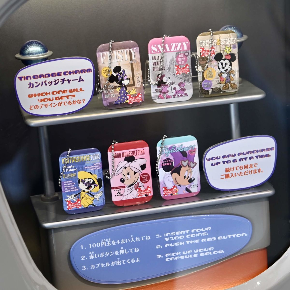ポスター柄カンバッジチャーム!東京ディズニーランド「ミニーのスタイルスタジオ」カプセルトイの紹介でした。