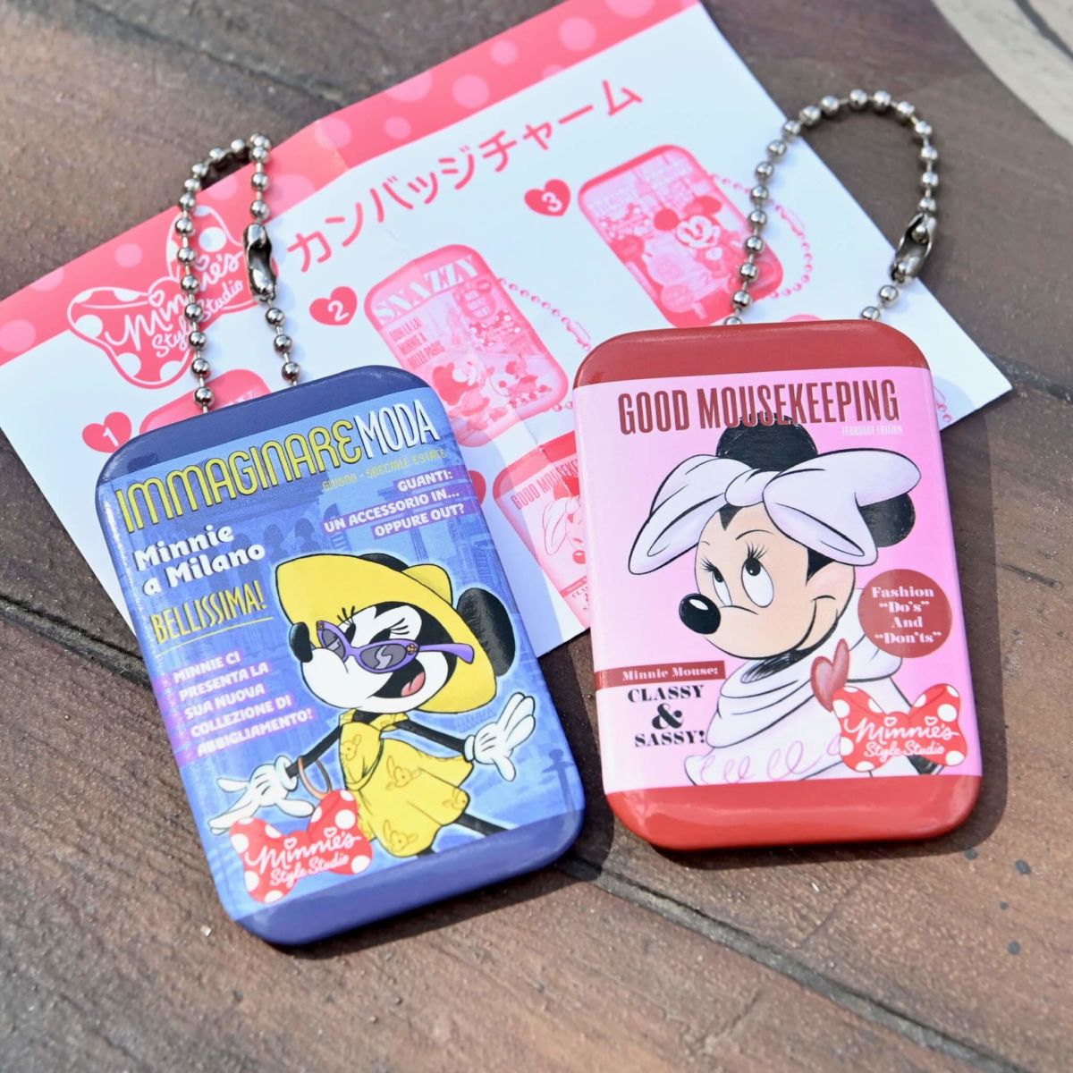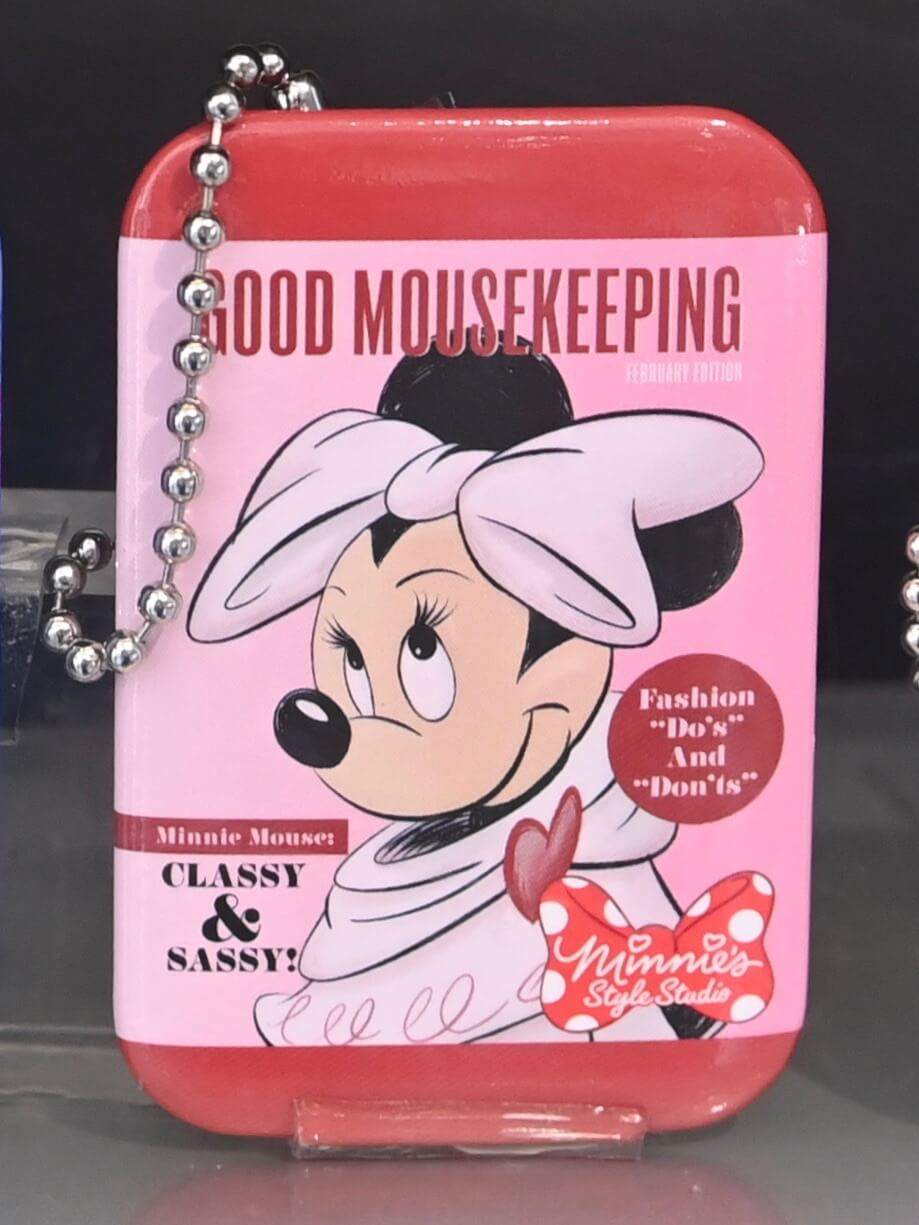 ミニーマウスがモデルをつとめた雑誌の表紙デザインのカンバッジチャーム。