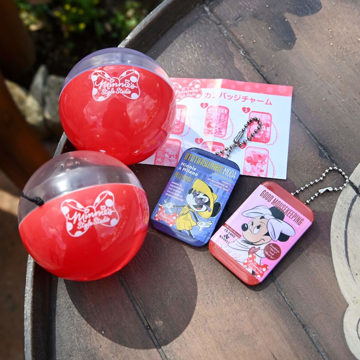 そんな「カプセルトイ」に、トゥーンタウンに新しく登場したキャラクターグリーティング施設「ミニーのスタイルスタジオ」デザインのカンバッジチャームが登場しました☆