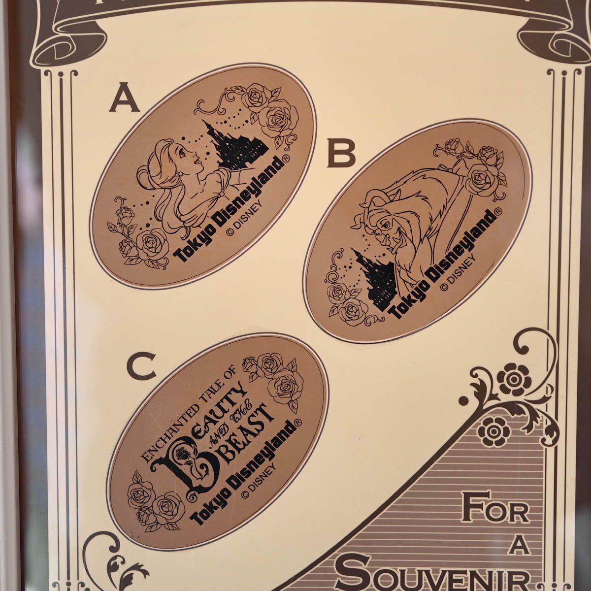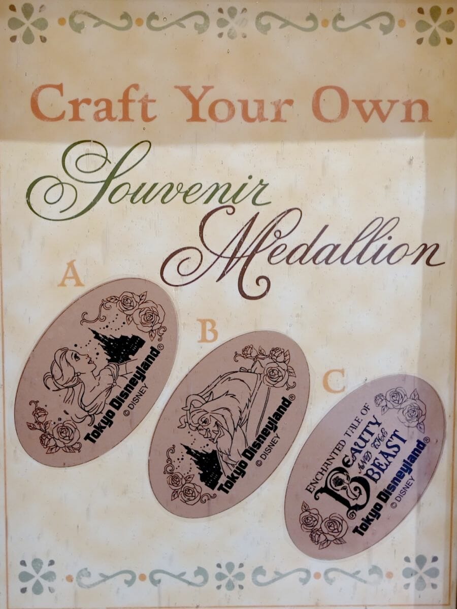 「美女と野獣“魔法のものがたり”」デザインも!東京ディズニーランド「ビレッジショップス」スーベニアメダルの紹介でした。