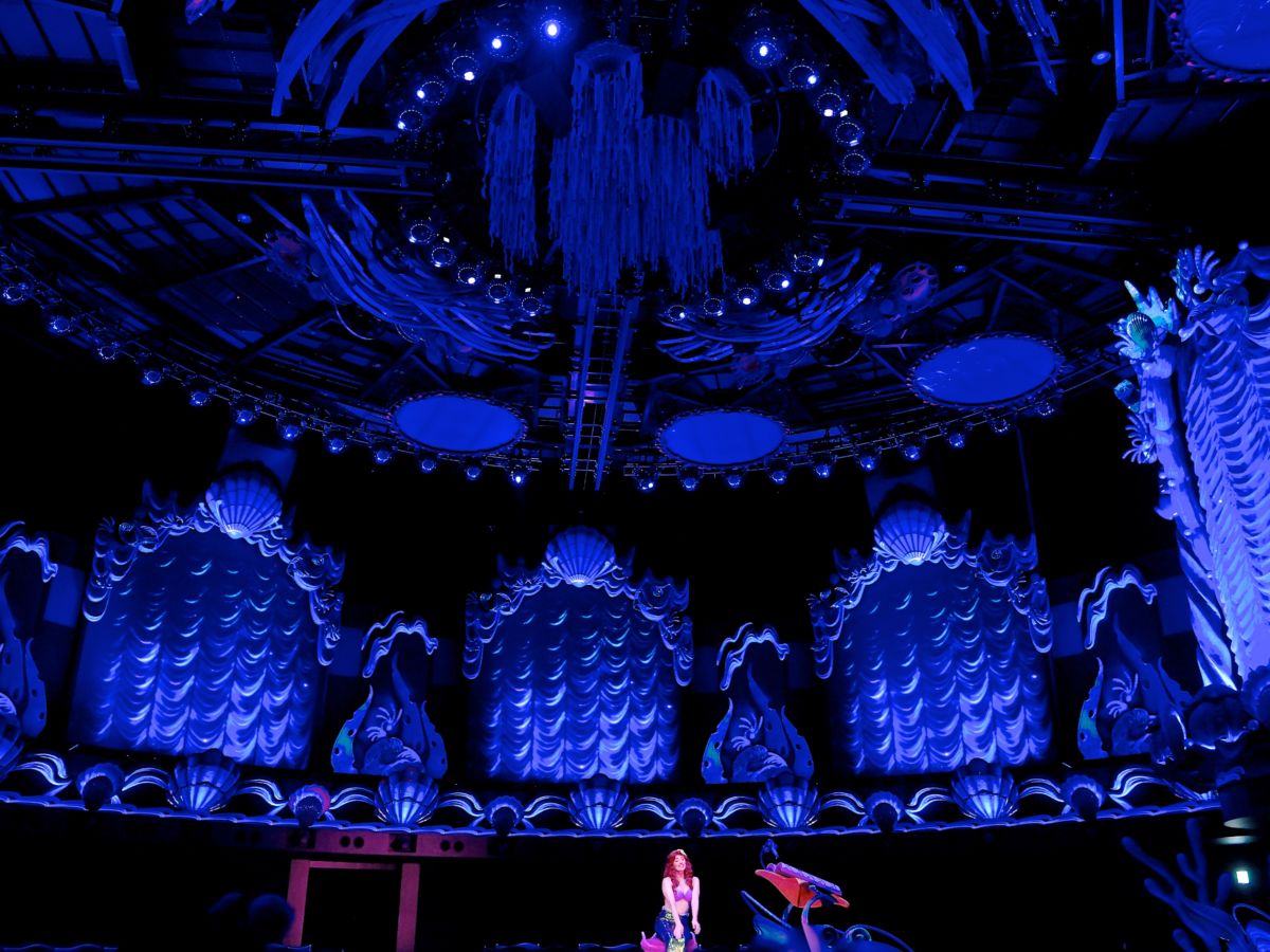 まるで海底にいるかのような空間で繰り広げられる、ディズニー映画『リトル・マーメイド』の「アリエル」と仲間たちが登場するミュージカルショー「キング・トリトンのコンサート」