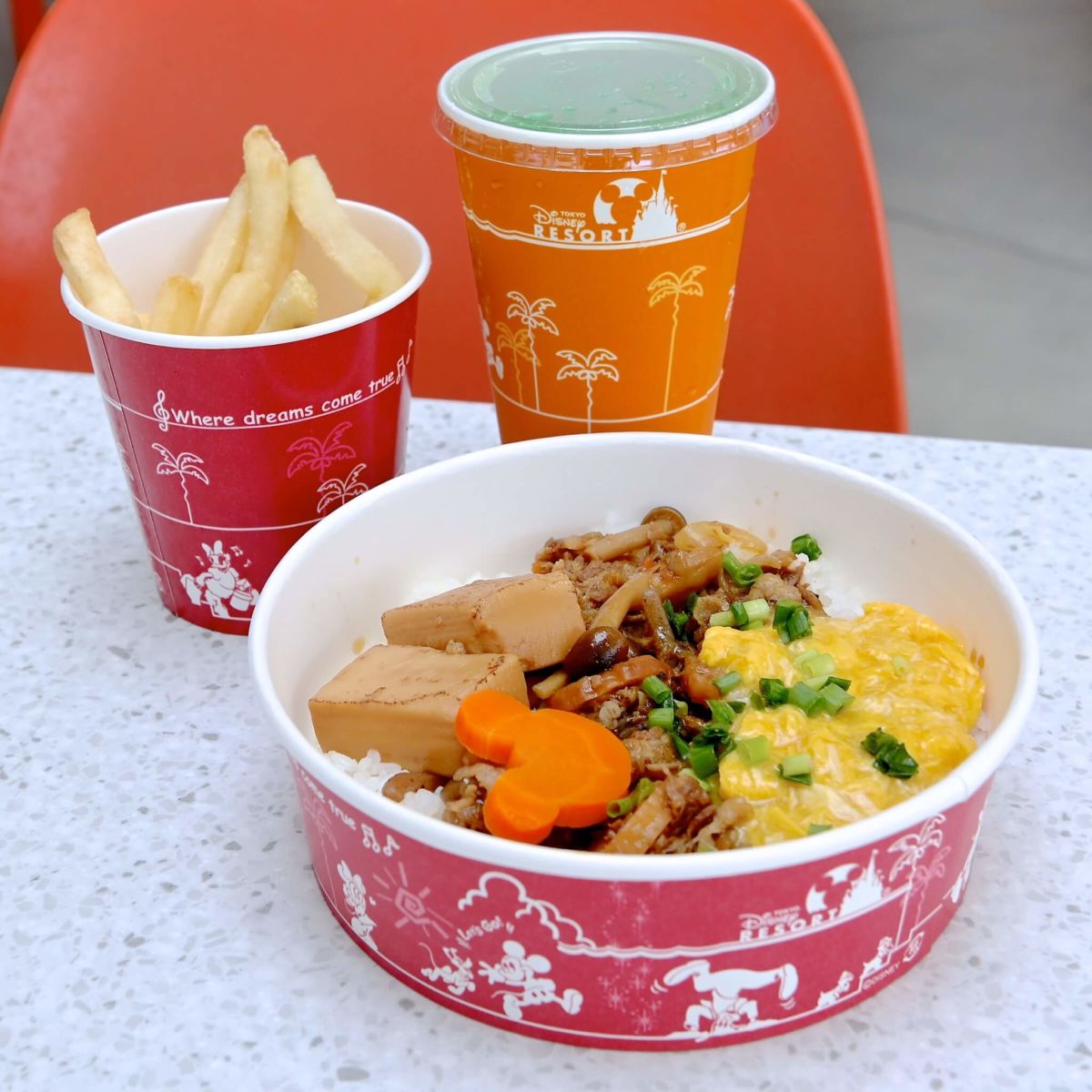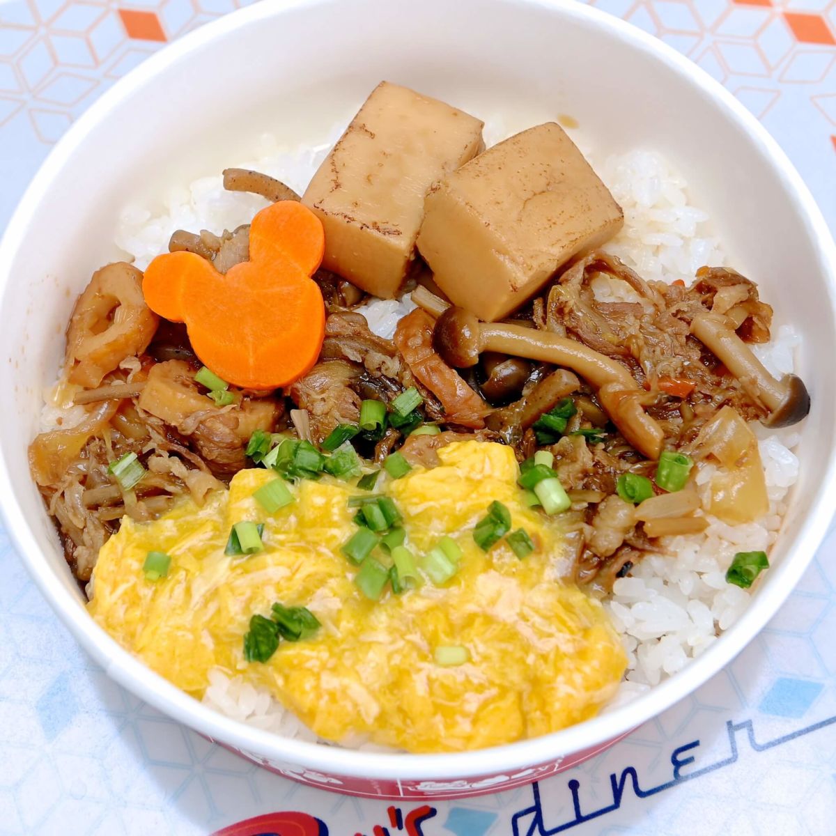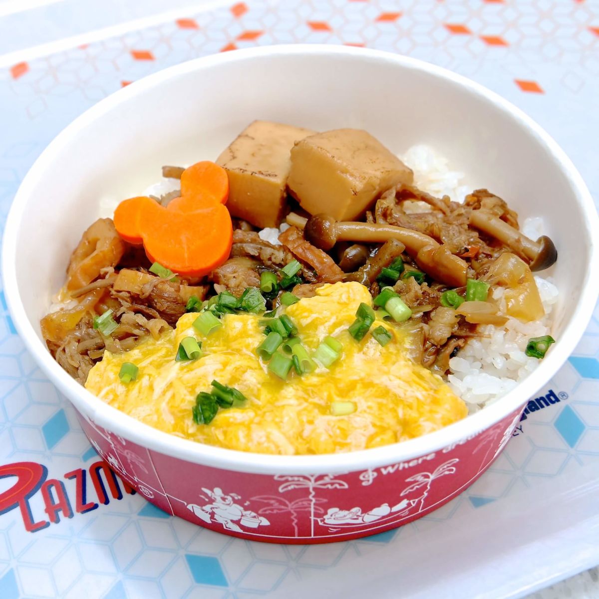 日本のディズニーパークならではのすき焼き風のライスボウル(丼)