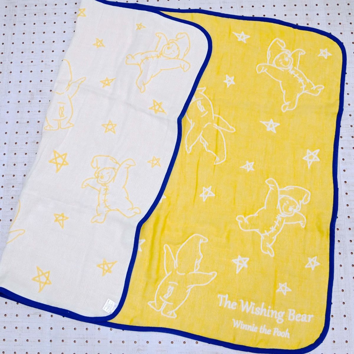 表面は鮮やかな黄色、裏面は爽やかな白色の異なるカラーがかわいいブランケットです。