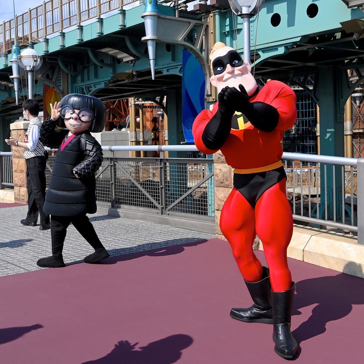 ソーシャルディスタンスを確保しながら楽しく挨拶してくれた「Mr.インクレディブル」と「エドナ・モード」