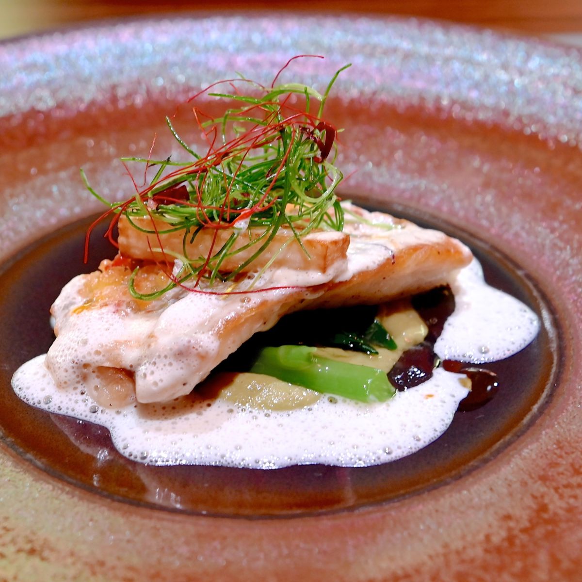 ・アラレを纏ったイトヨリ鯛のポワレ 西京味噌香る豆乳のエキューム