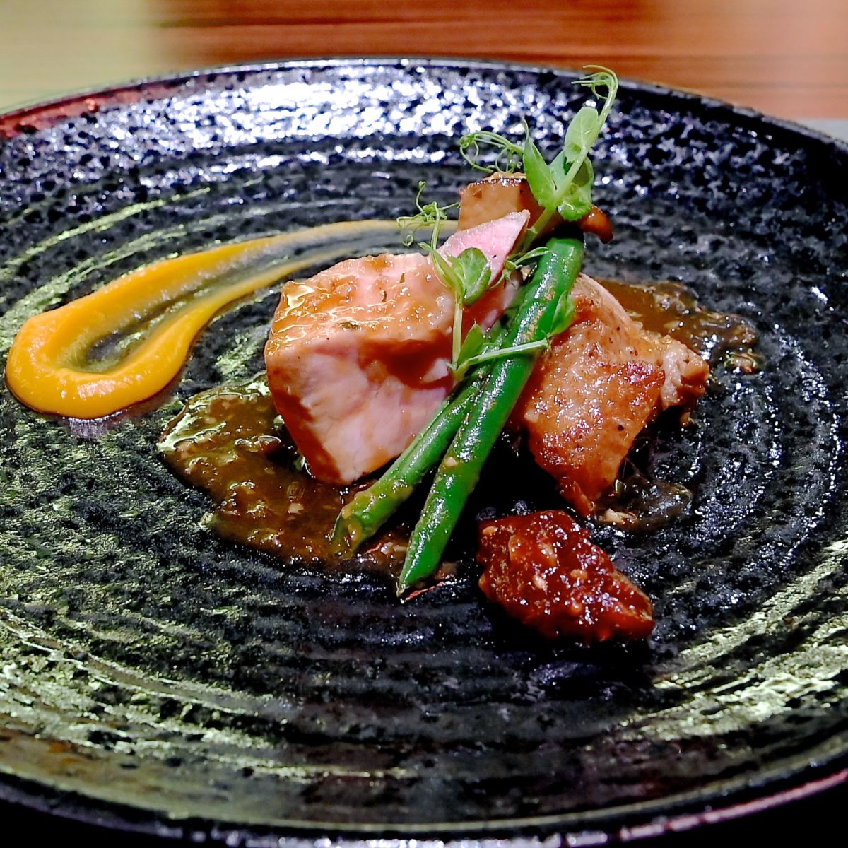 ・ポークのロースト マロンとサルシッチャのブレゼ リンゴと生姜のアクセント