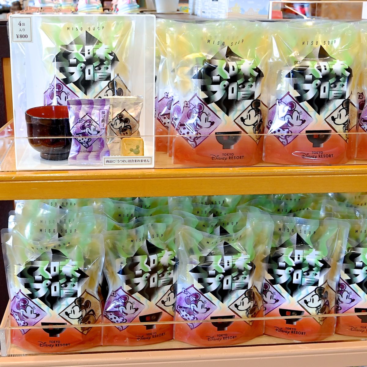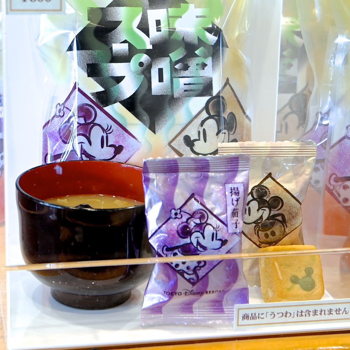 パッケージには、「味噌スープ」の文字と、和風デザインのミッキーマウスとミニーマウス。
