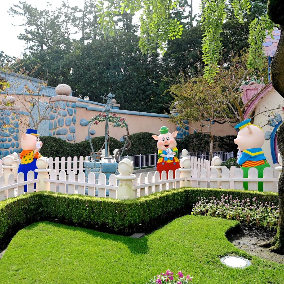 そんな「トゥーンタウン」にある「ミニーの家」にディズニー短編映画『三匹の子ぶた』に登場するプラクティカル・ピッグ、フィドラー・ピッグ、ファイファー・ピッグが登場しています☆