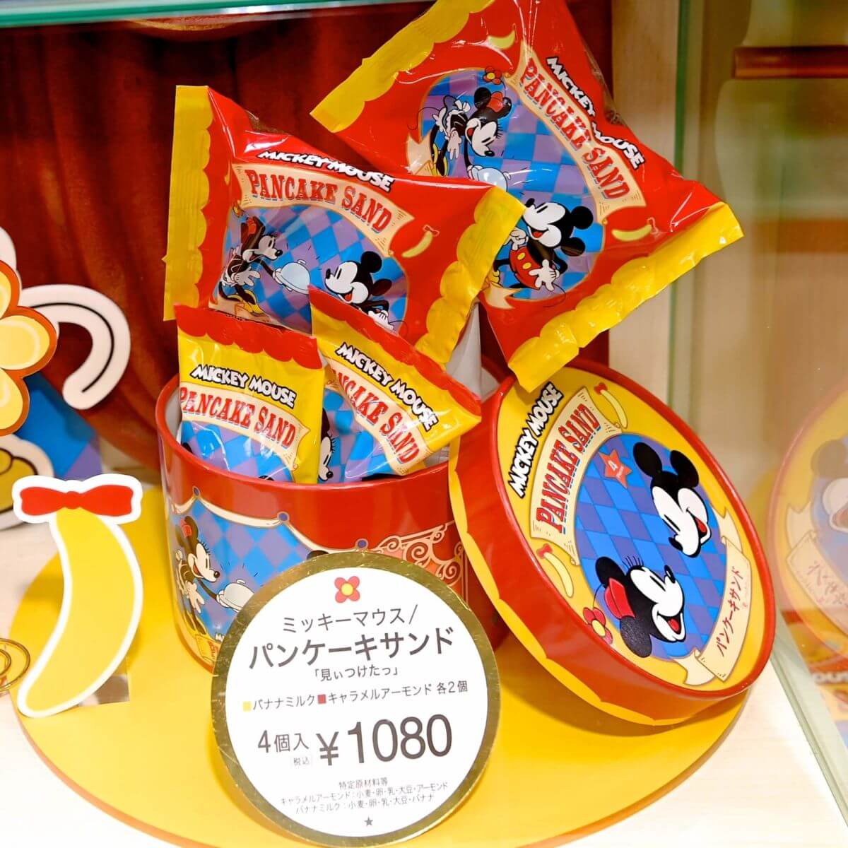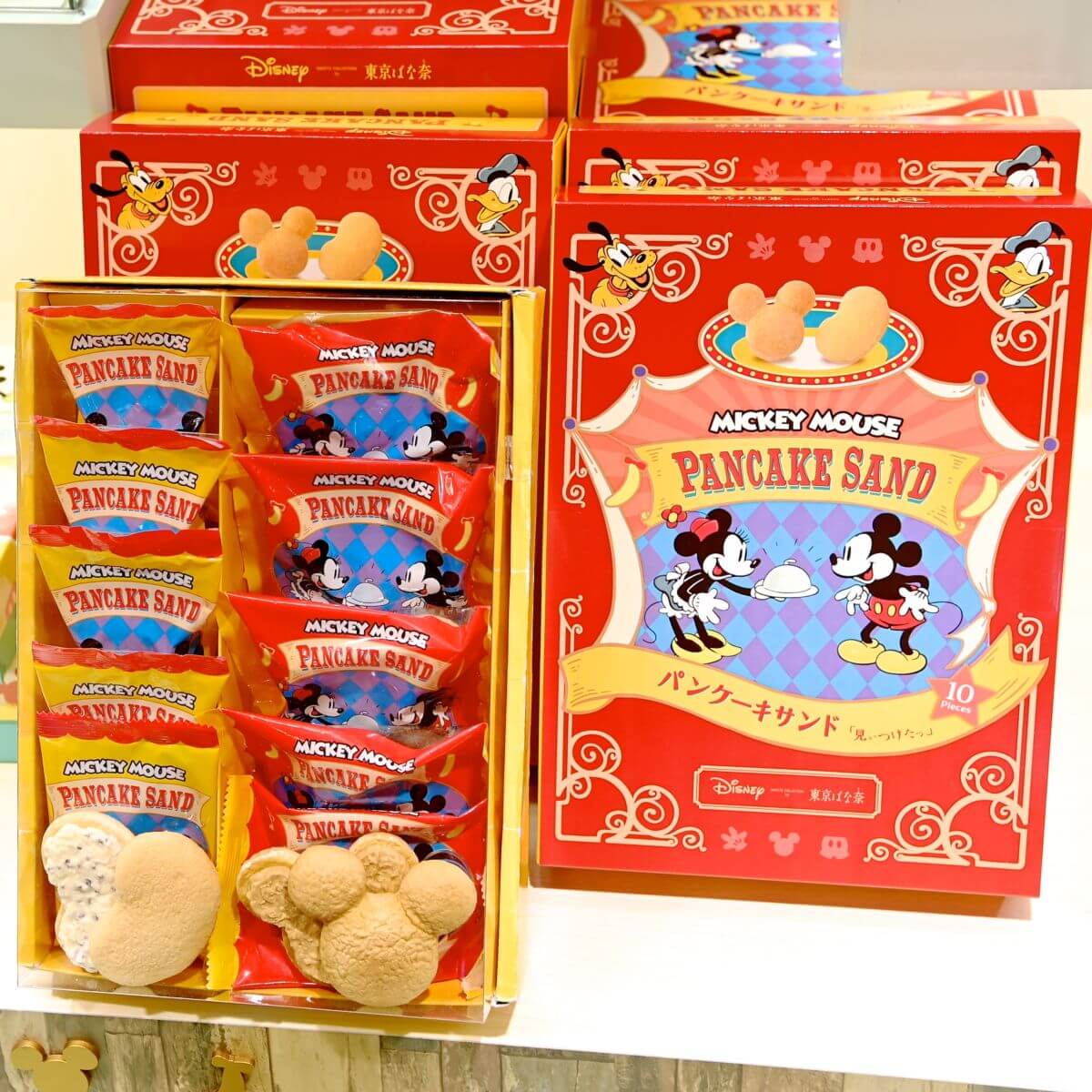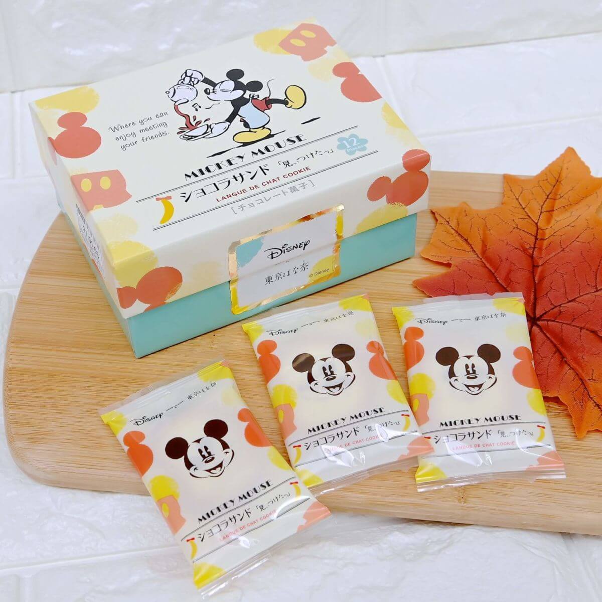 パッケージにはエプロン姿のミッキーマウスとアイコン、東京ばな奈がデザインされています。