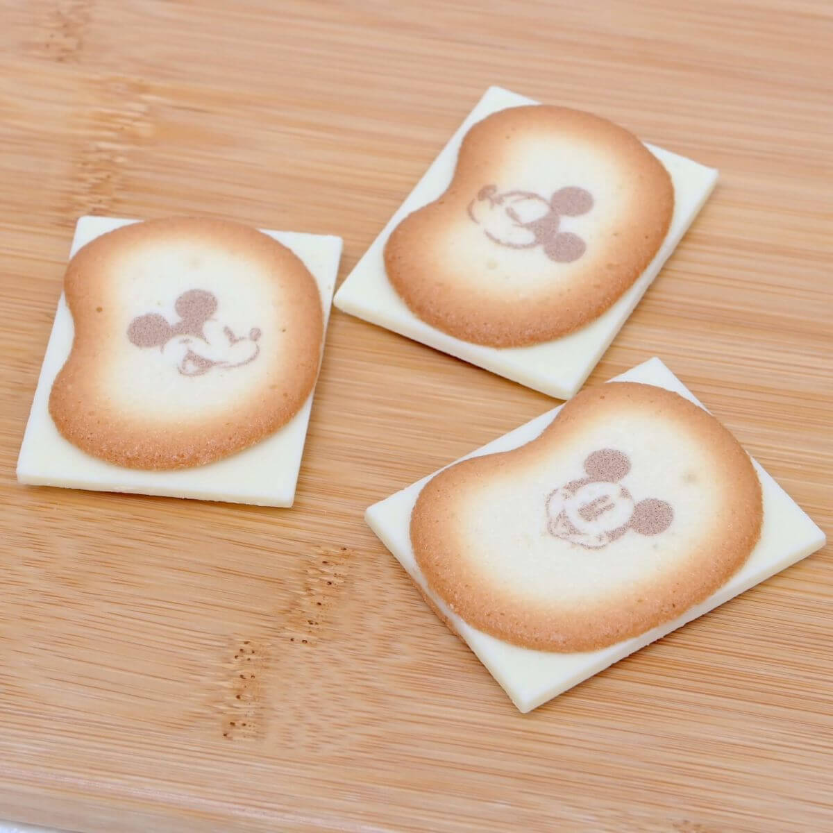 ラングドシャクッキーにはミッキーマウスのお顔がデザインされています。